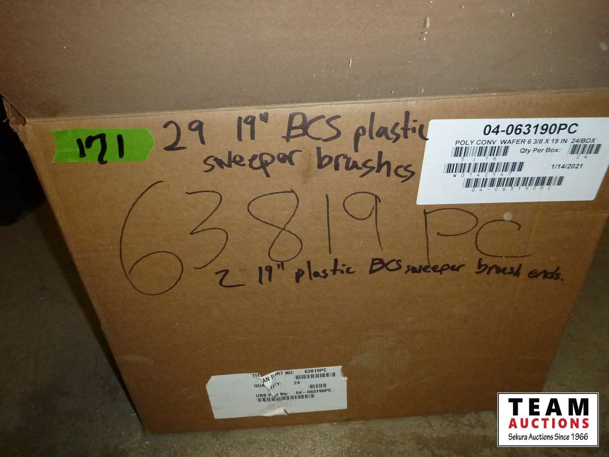 (29) Poly sweeper brushes, (2) poly sweeper brush ends, some new and some used