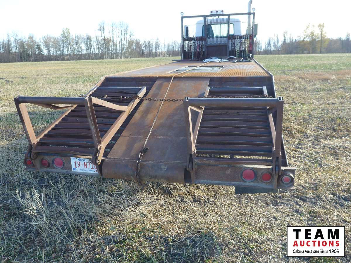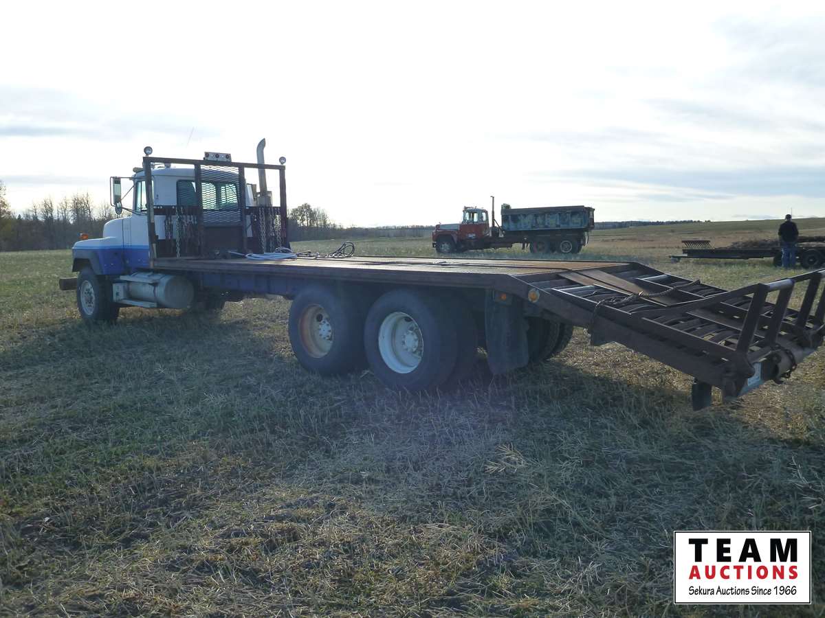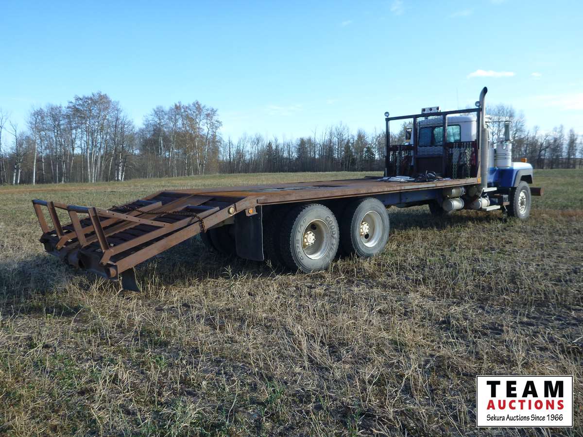 El 50 Mack engine, 20 ft deck with 6 ft beavertails and flip over ramps, winch, 385/65R22.5 front & 11R22.5 rear tires