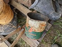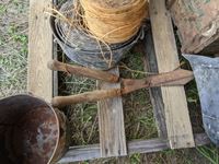 (2) wood crates, (3) rolls belting, b/a can, roll binder twine, shears