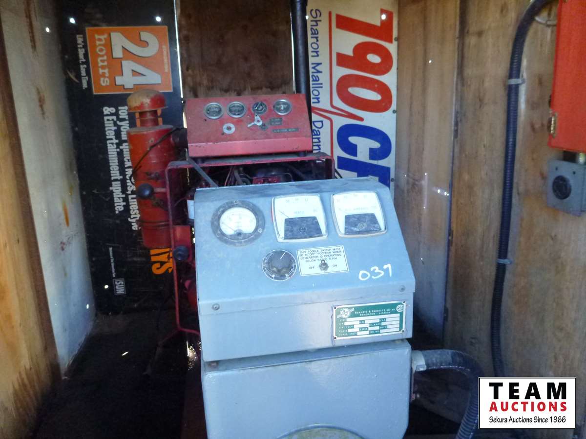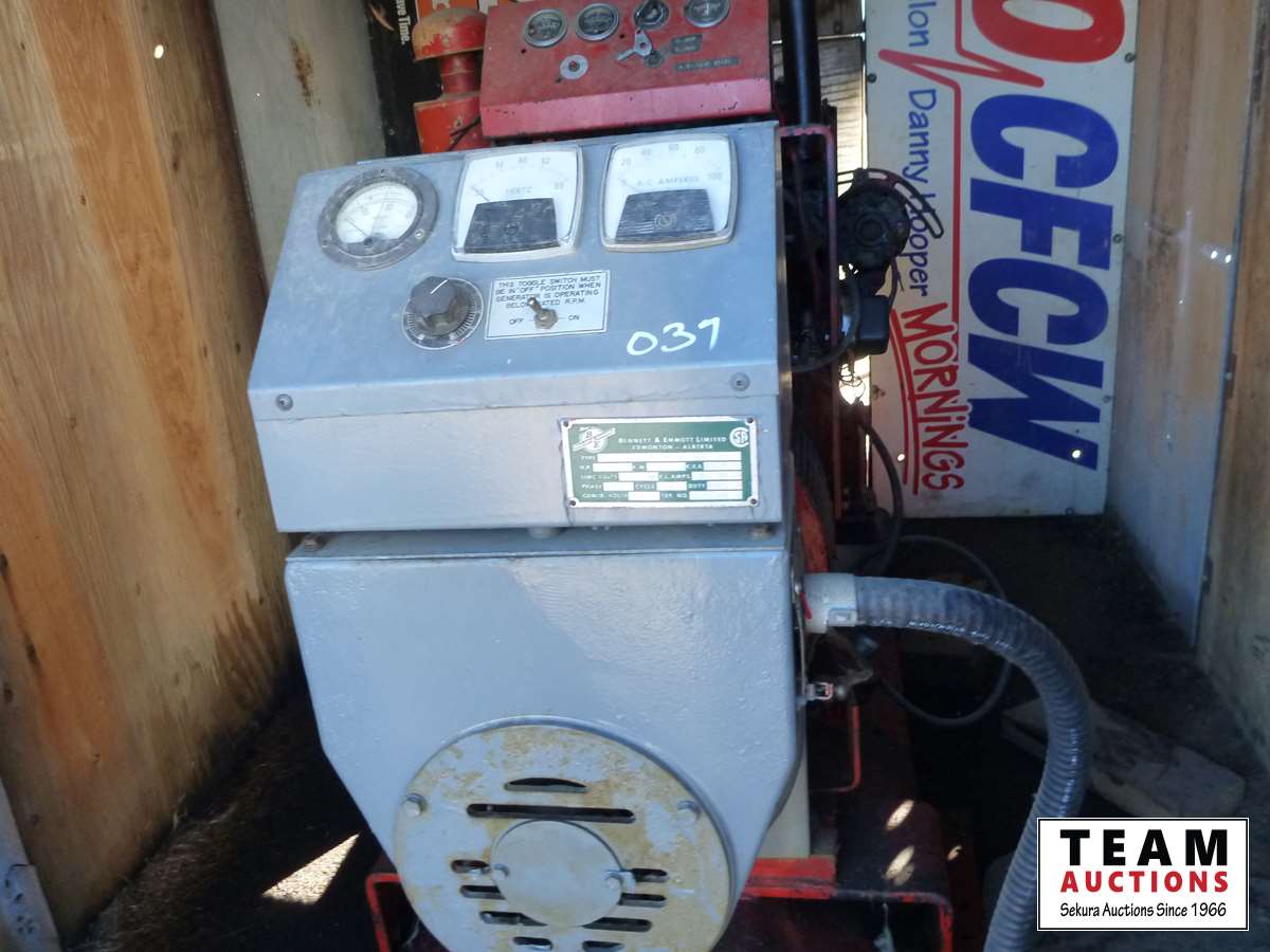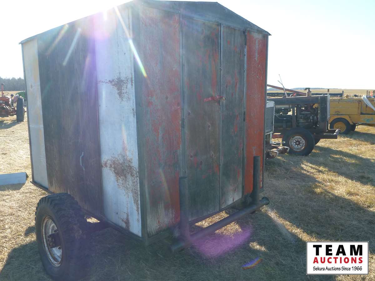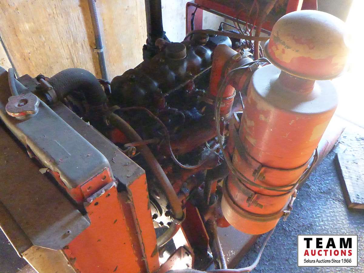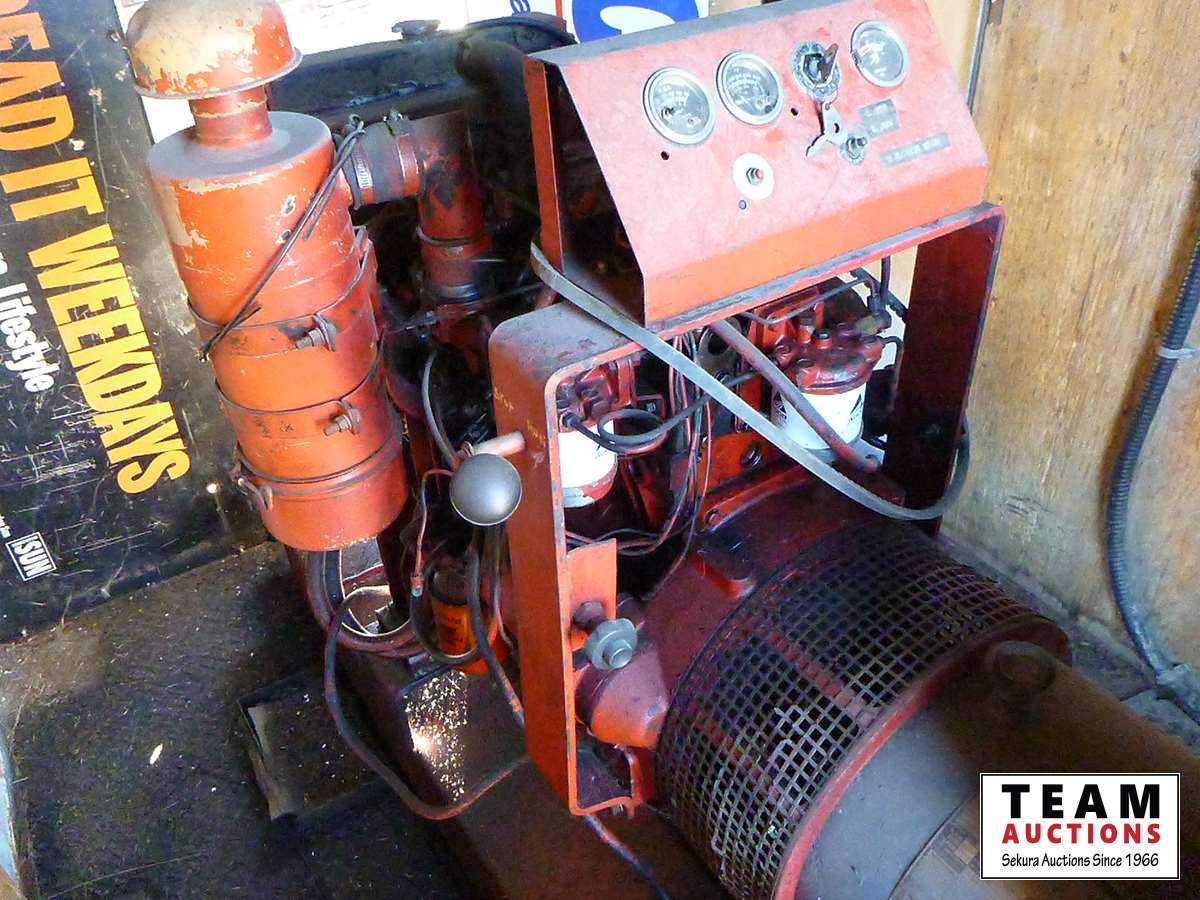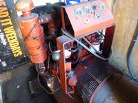 4 cylinder diesel engine, complete shed on metal, skid, has transport wheels