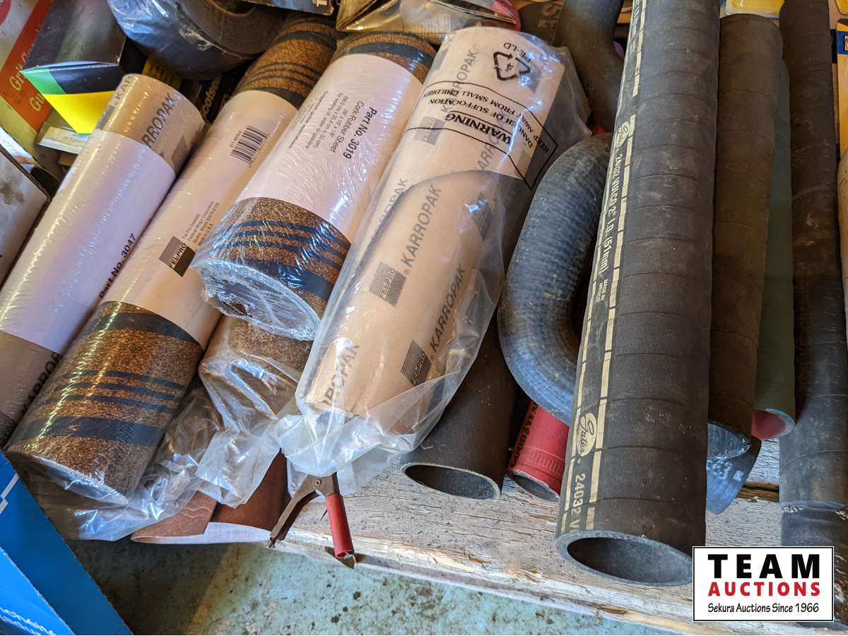 Miscellaneous parts, fibreglass repair kit, seals, gauges, ring compressors, rolls of gasket material, electrical parts