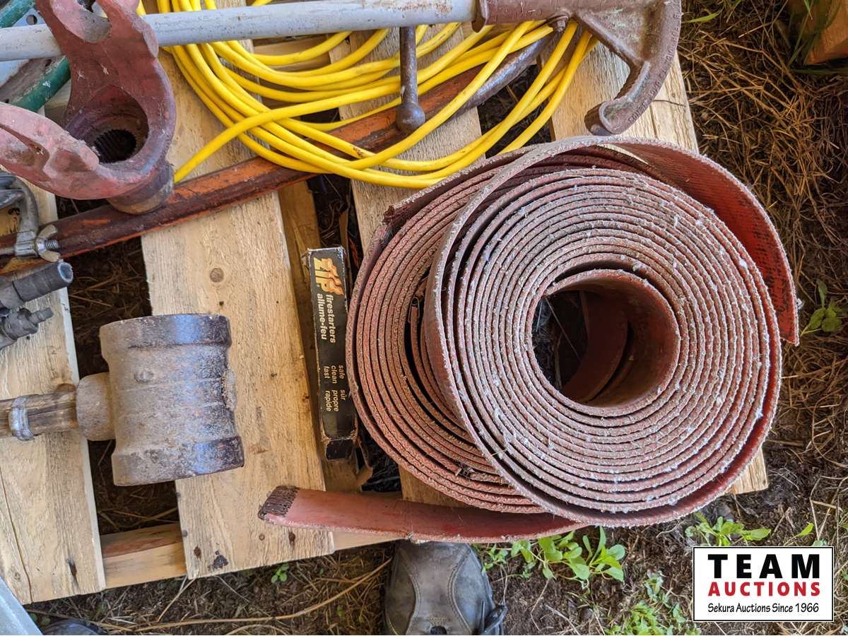 Jack all with extra parts, belting, cross cut saw, post maul, air hose, extension cord, miscellaneous items