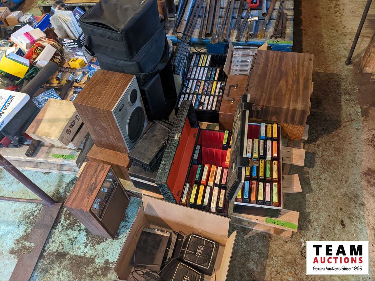 334 Qty of Cassettes, CD's, 8 Track Tapes, Speakers, Radio's, 8 Track Player