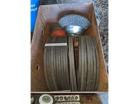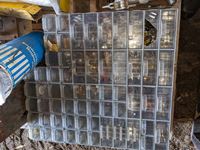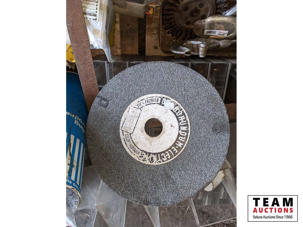 Grinding Discs, drill bits, welding rod, Oxy/ Acet gauges, cabinet with hardware, 12 inch grinding stone, trailer hitch balls, miscellaneous welding items