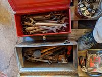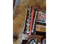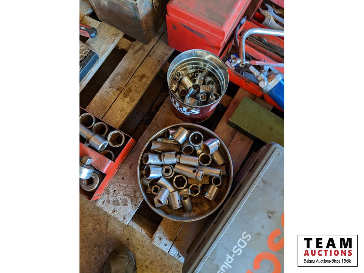 3/4 inch Socket set, Bosch SDS Hammer Drill, assorted wrenches and sockets, miscellaneous tools