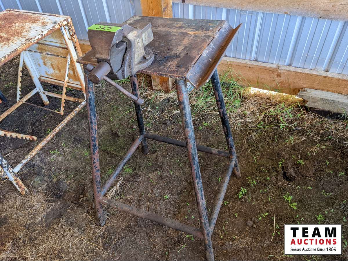 127 Vice Stand with Vise, White Metal Table with Folding Extensions