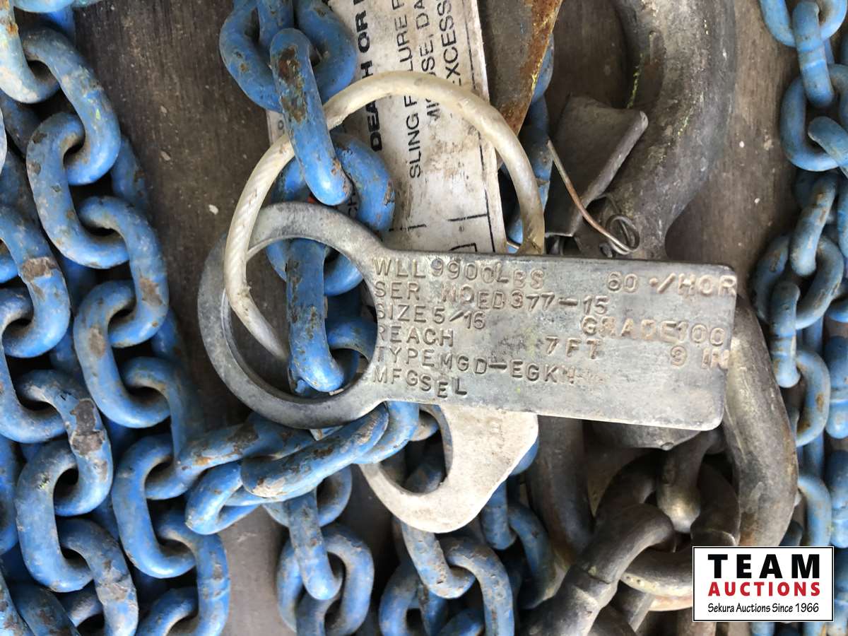 Nylon slings, lifting chain, assorted chains, Shop Built adjustable spreader bar