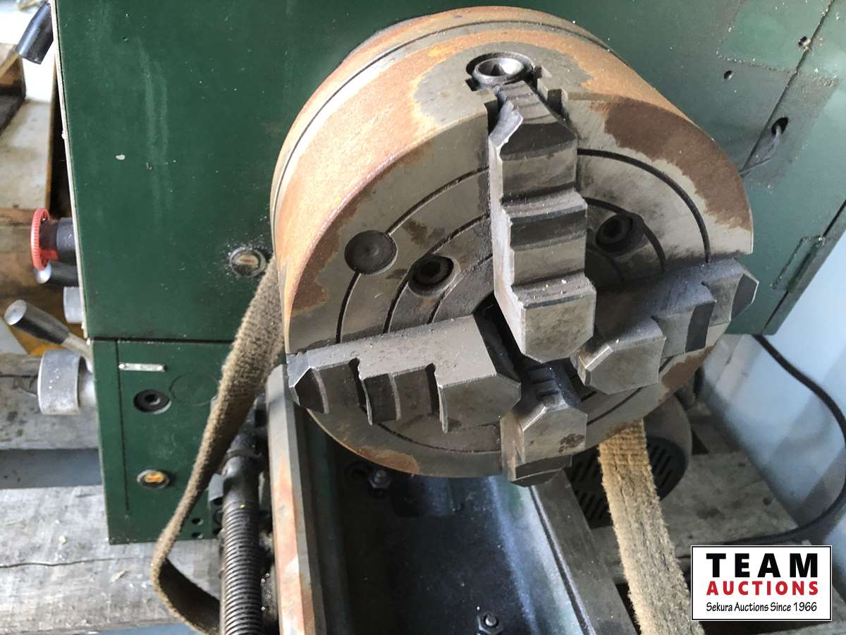4 inch chuck, broken down in 8 pieces, (2) 3 jaw chucks, foot pedal control, center giude, lubricant, chuck