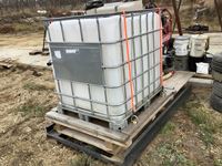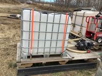 5 hp gas engine, c/w poly water tank mounted on metal lifting frame