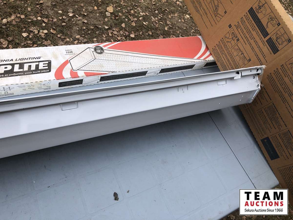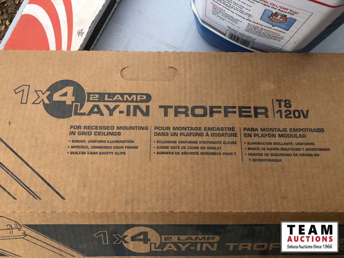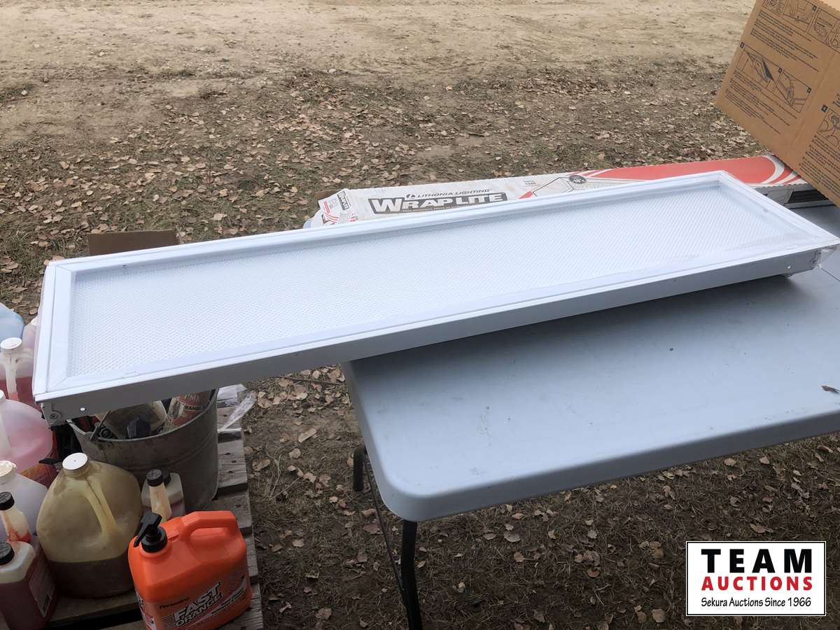 Water jugs, light fixtures, bulb