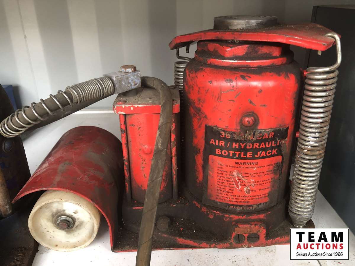 12 ton bottle jack, 16 compartment bin, 30 ton air/hydraulic jack