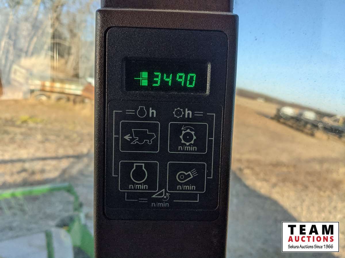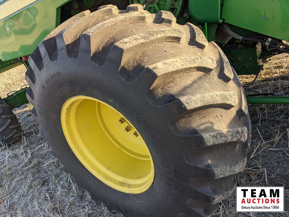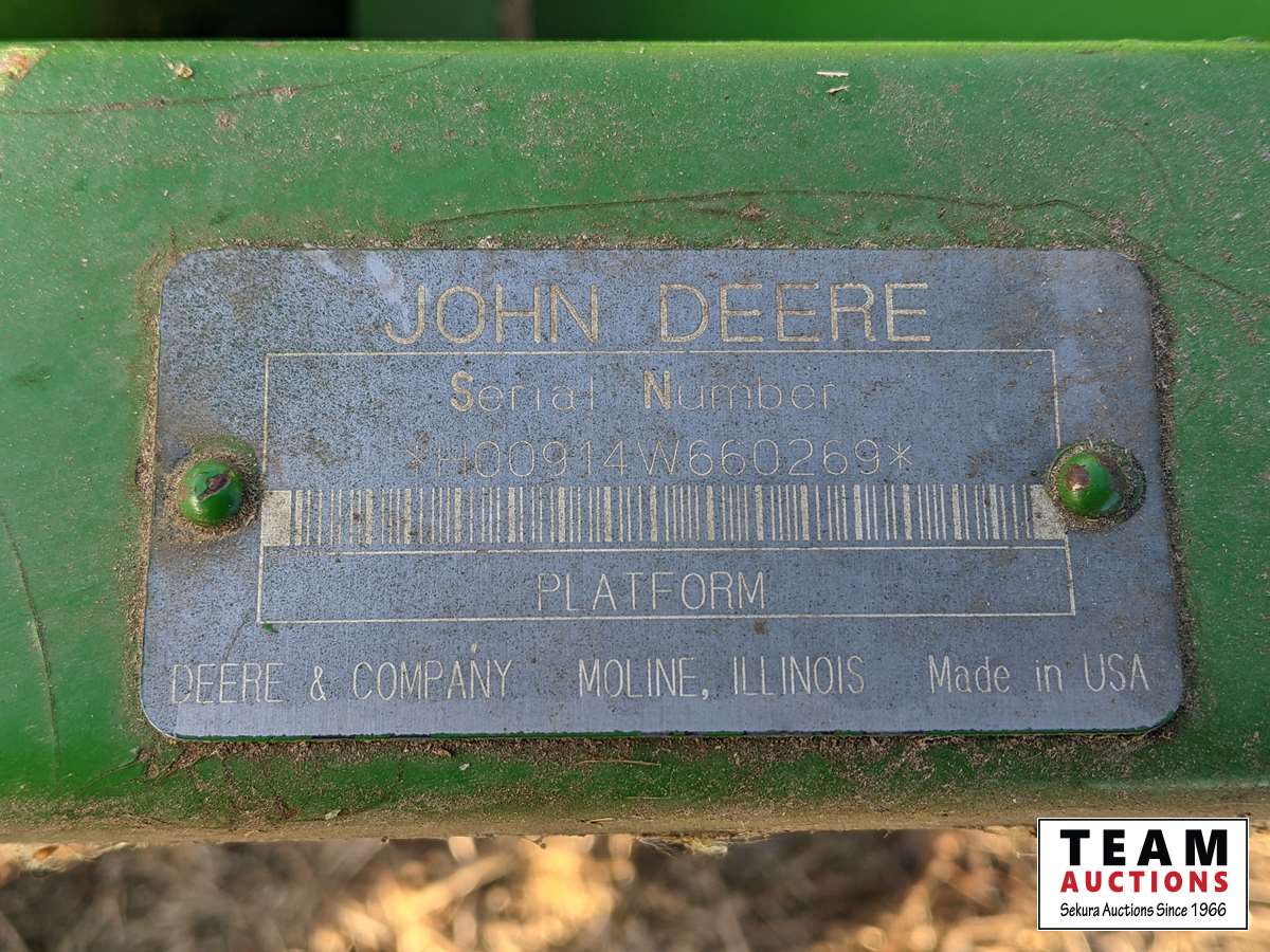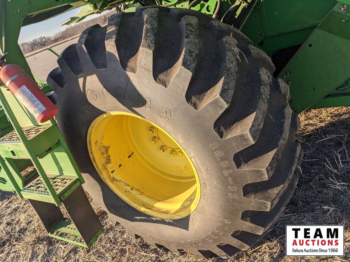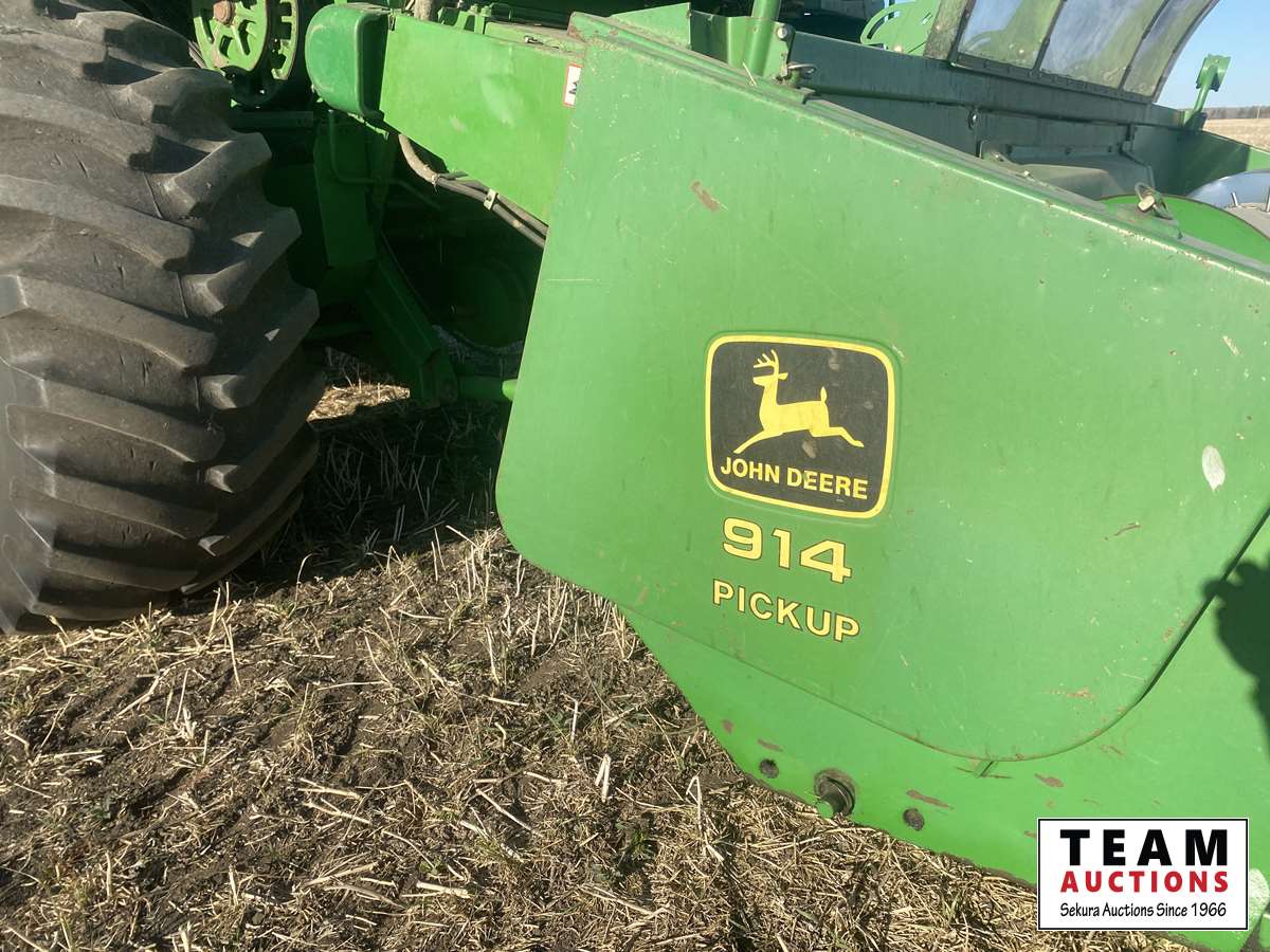 John Deere 914 14 ft header, s/n H00914W660269, VSR, auto HHC, rock trap, fine cut chopper, 20 ft auger, lateral tilt feader house, 30.5L-32 F, 14.9-24 R, 3490 sep hrs showing