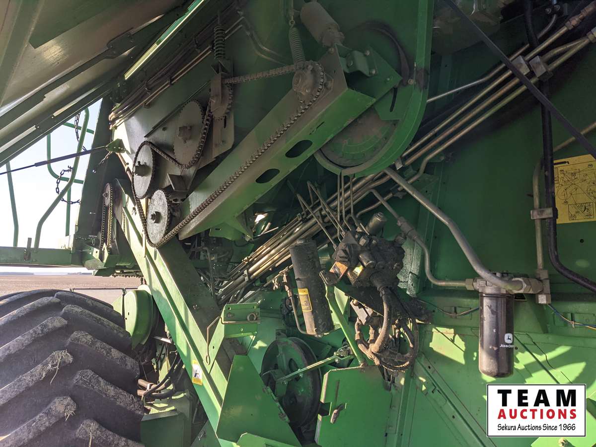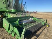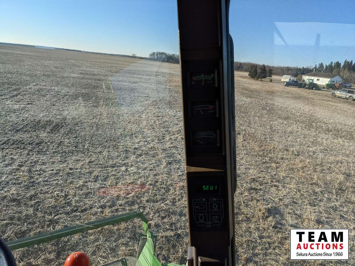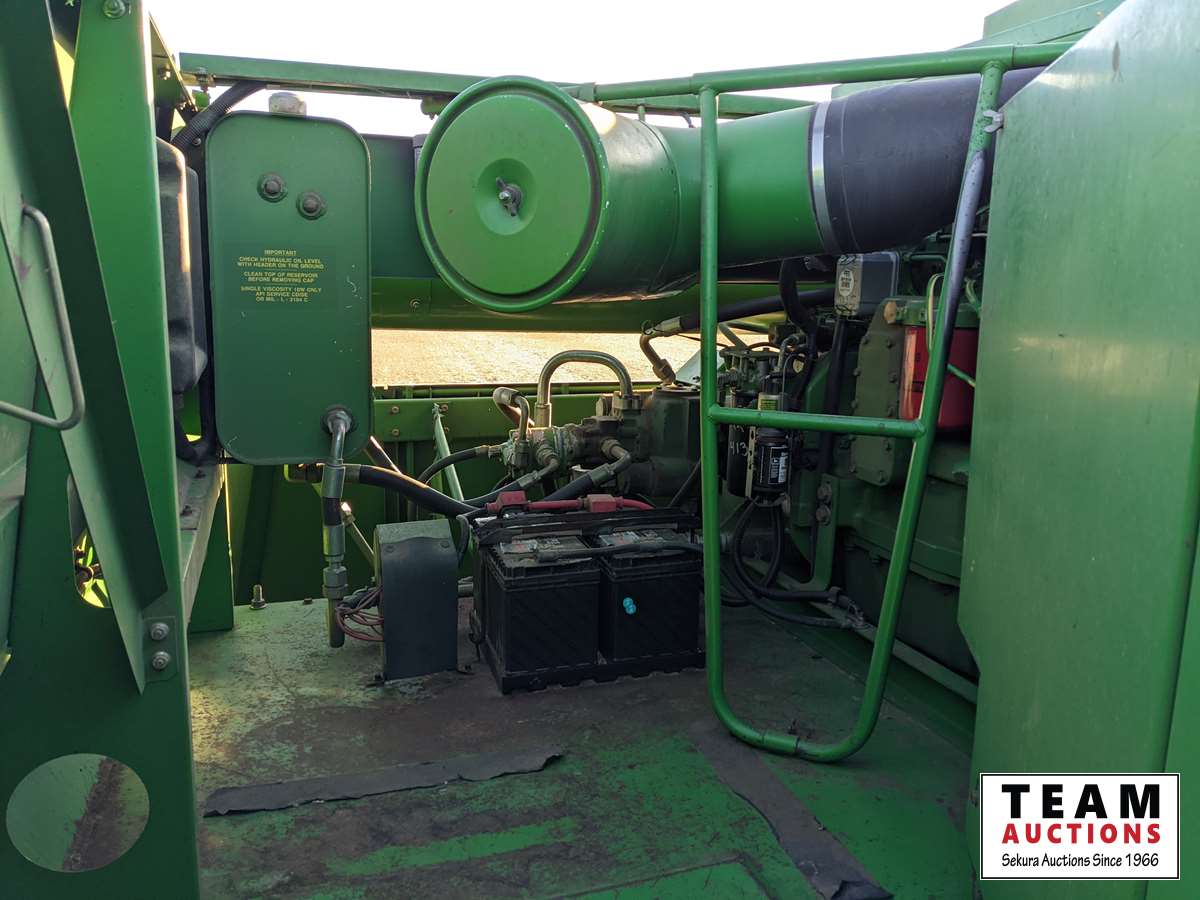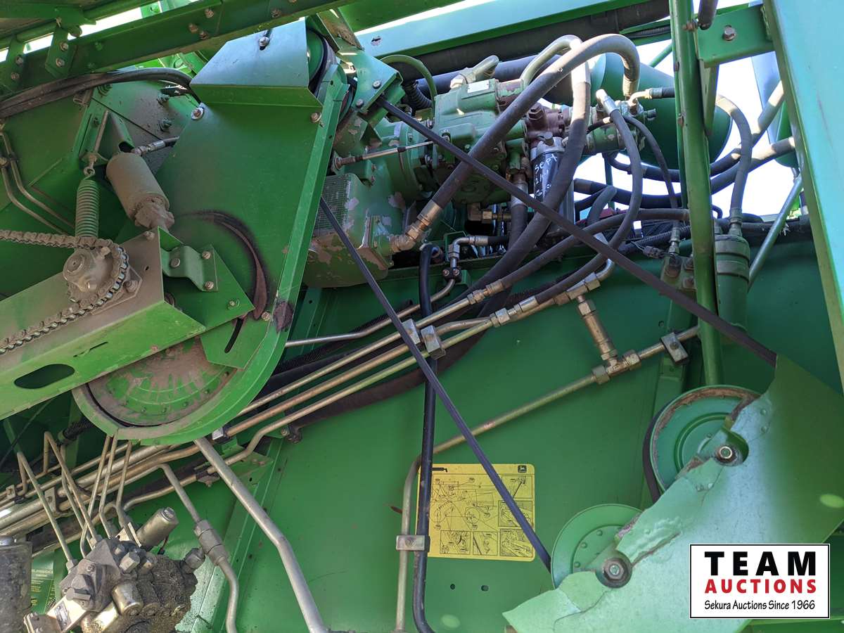 John Deere 914 14 ft header, s/n H00914W660269, VSR, auto HHC, rock trap, fine cut chopper, 20 ft auger, lateral tilt feader house, 30.5L-32 F, 14.9-24 R, 3490 sep hrs showing