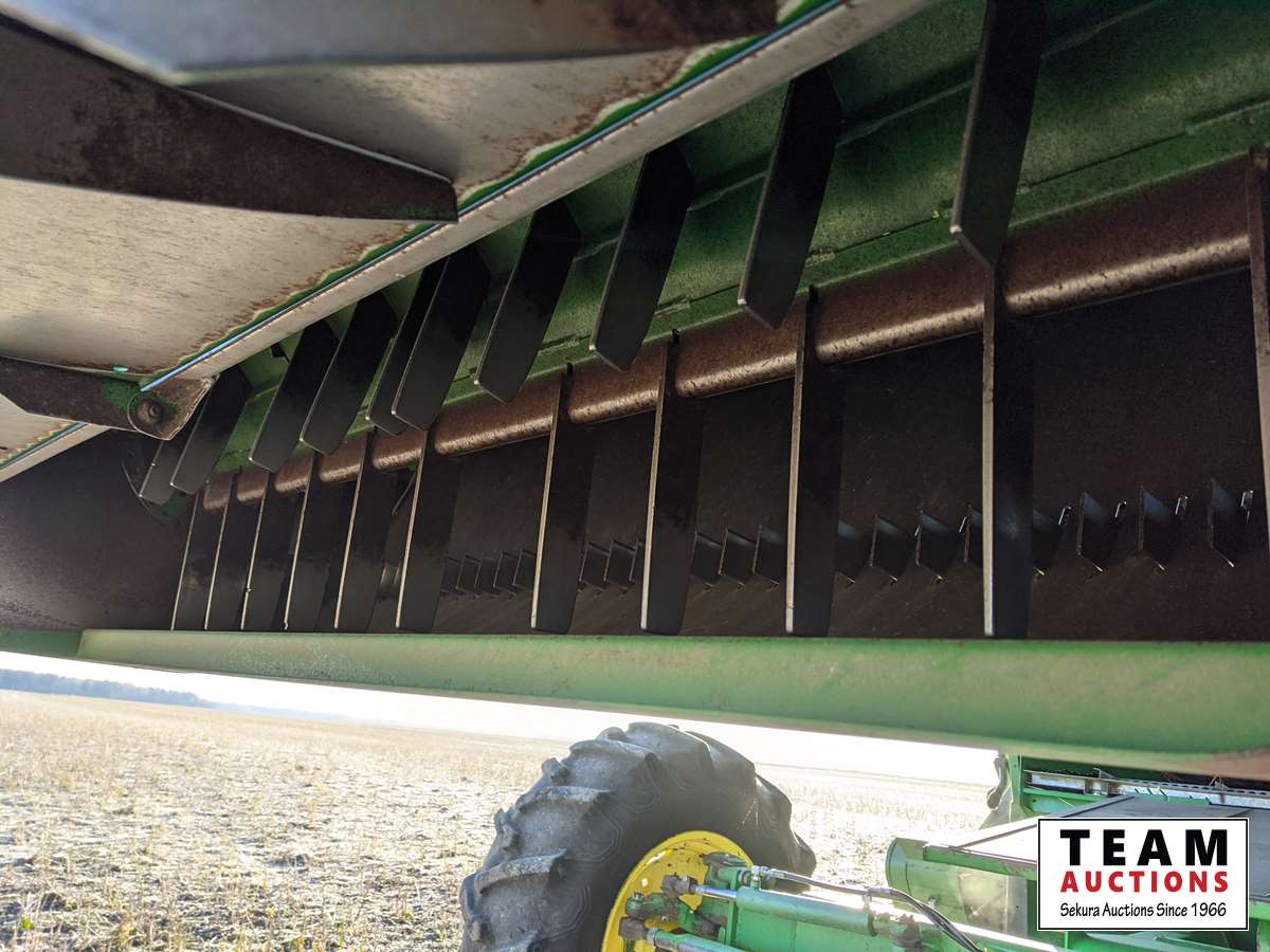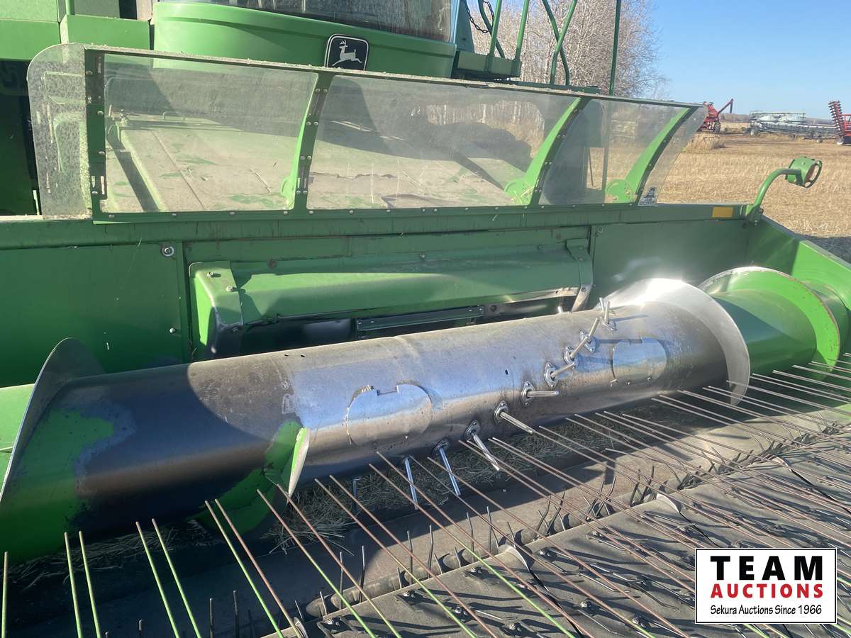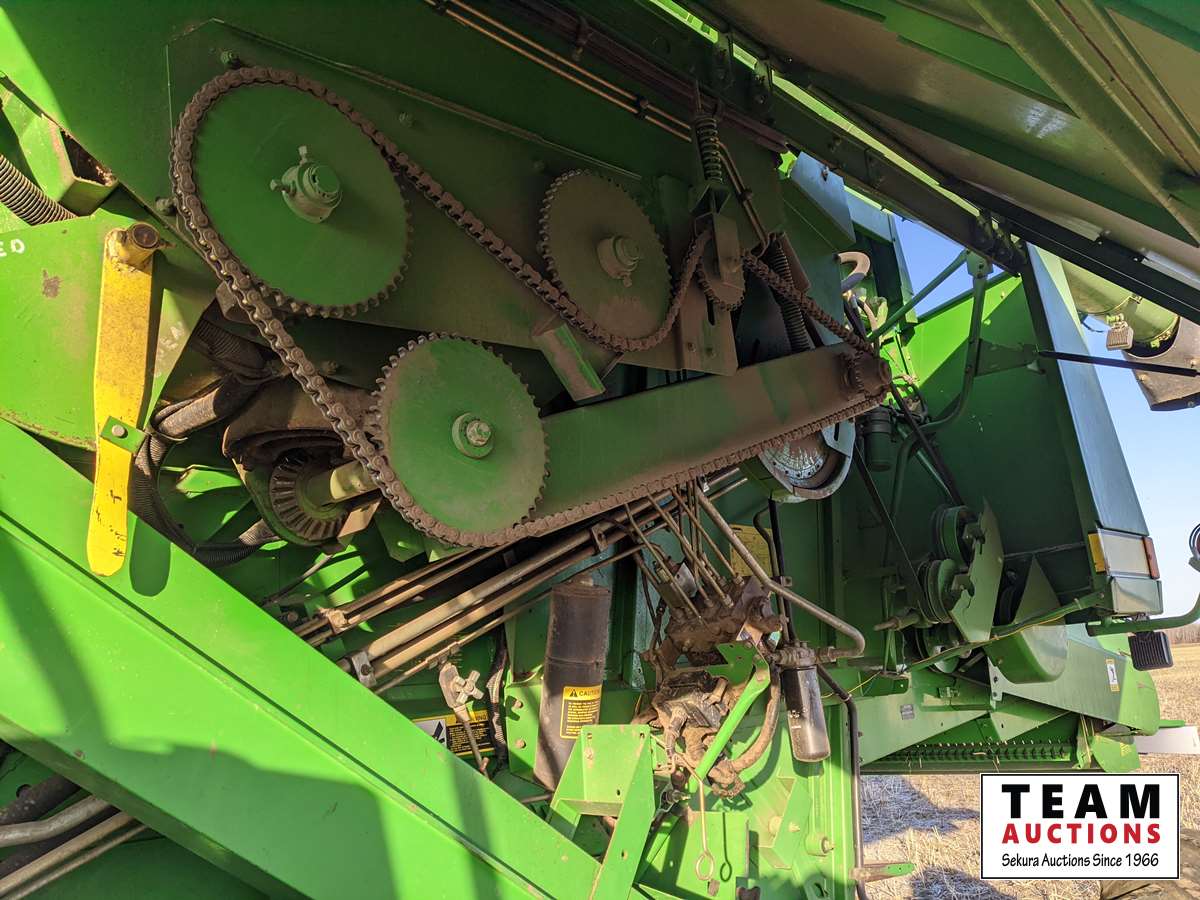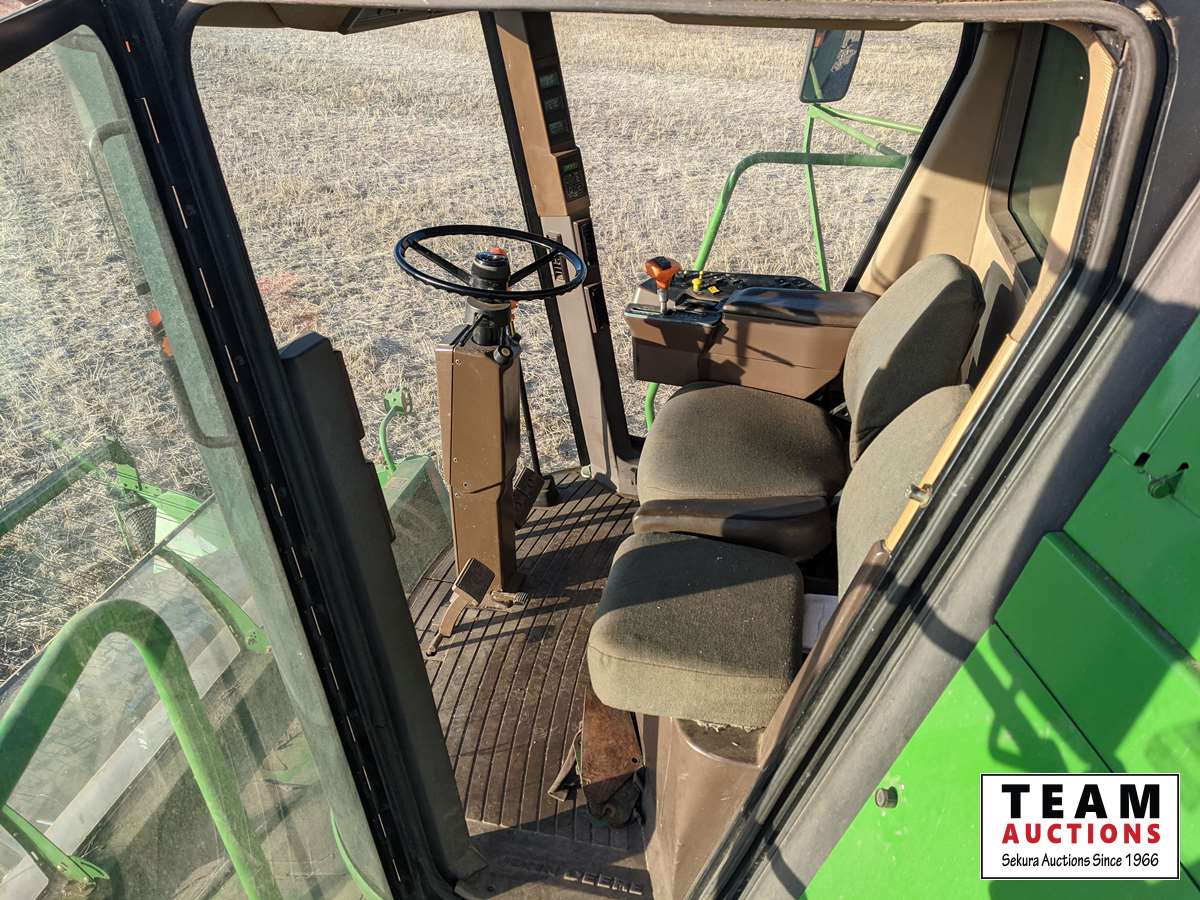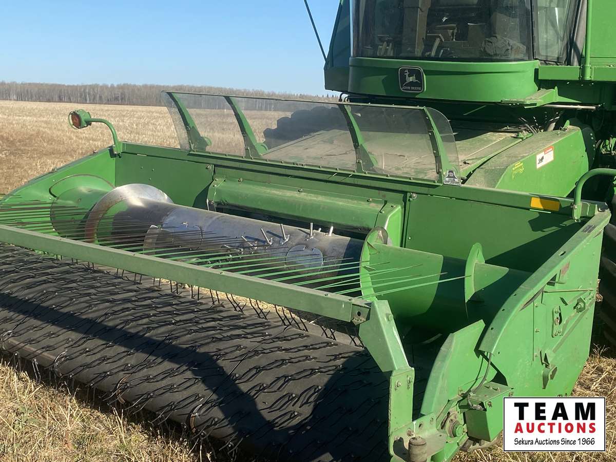 John Deere 914 14 ft header, s/n H00914W660269, VSR, auto HHC, rock trap, fine cut chopper, 20 ft auger, lateral tilt feader house, 30.5L-32 F, 14.9-24 R, 3490 sep hrs showing