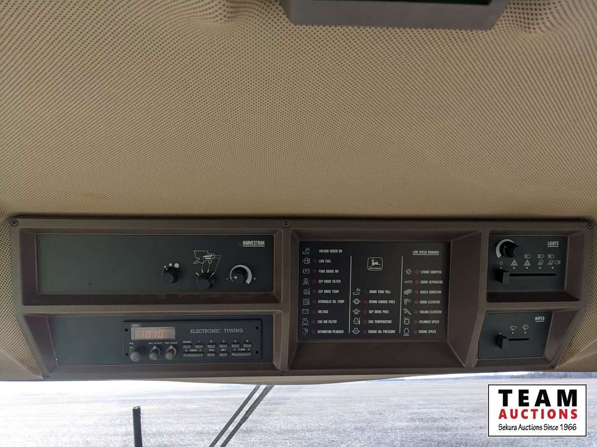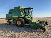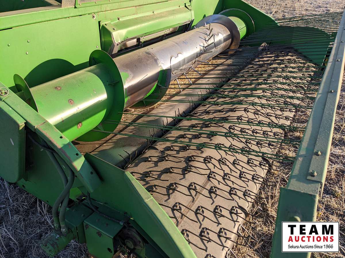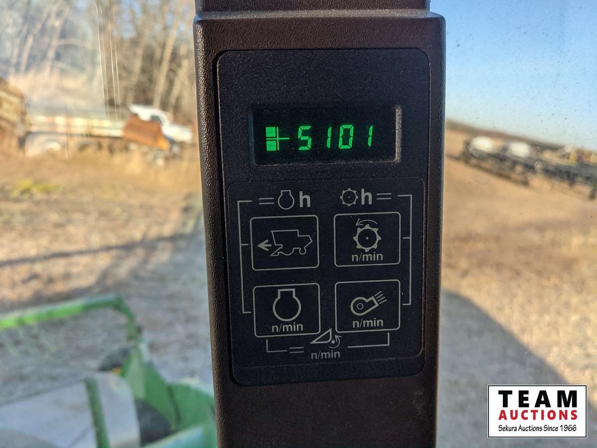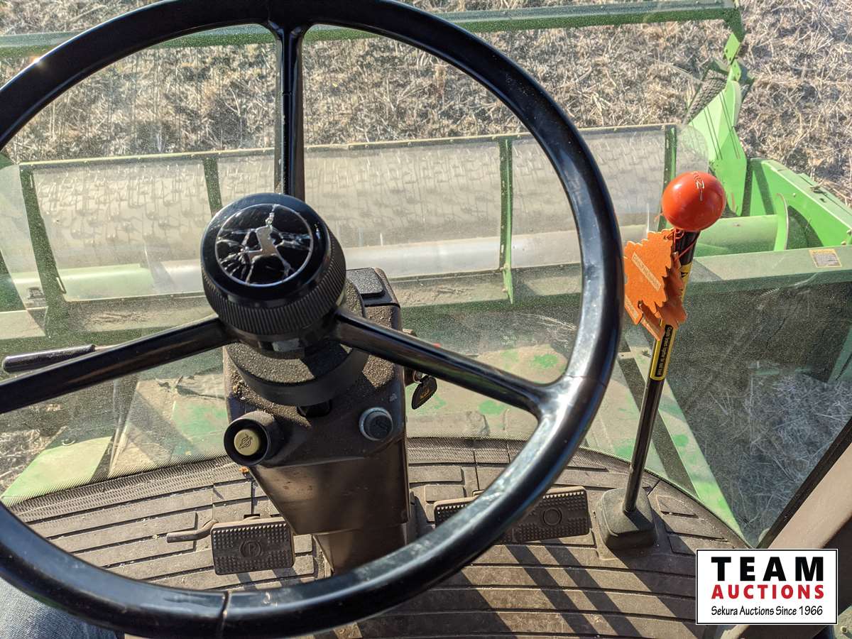 John Deere 914 14 ft header, s/n H00914W660269, VSR, auto HHC, rock trap, fine cut chopper, 20 ft auger, lateral tilt feader house, 30.5L-32 F, 14.9-24 R, 3490 sep hrs showing