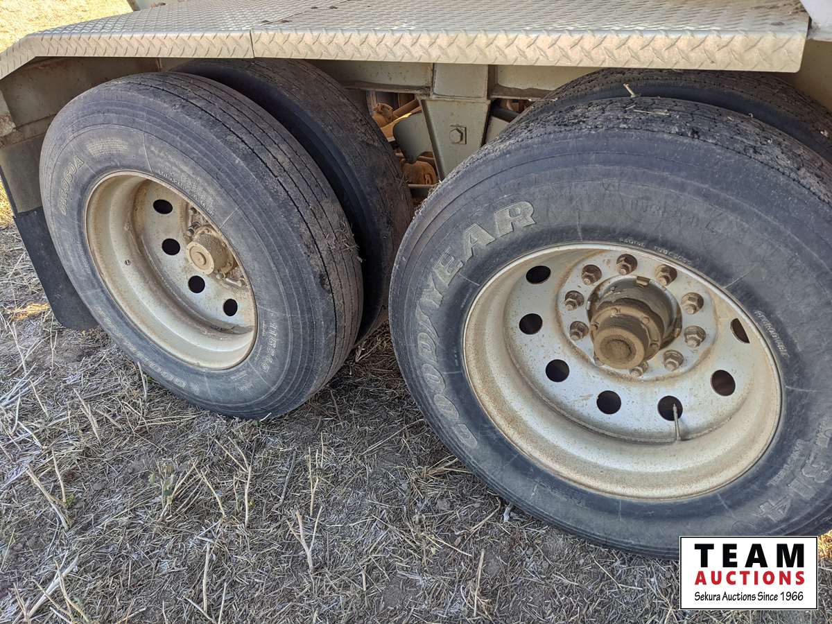 open ended, steel box, aluminum slopes, spring suspension, Michels roll tarp, 2 compartment