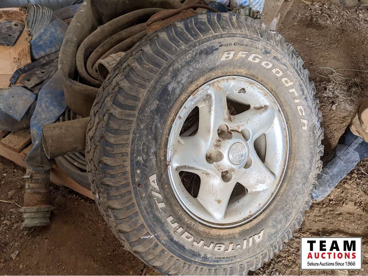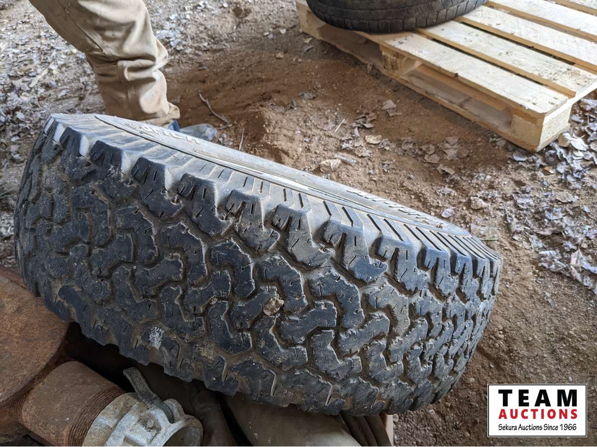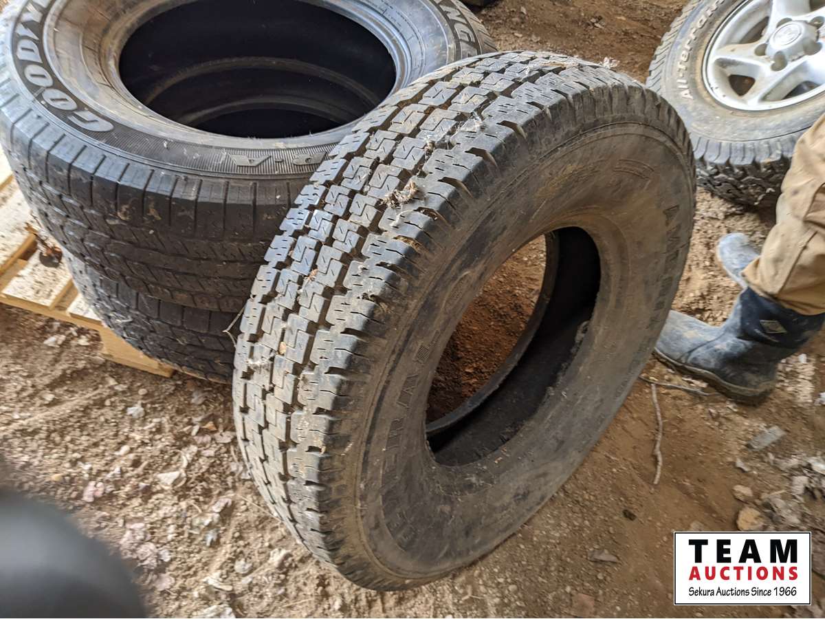 (2) Goodyear Wrangler 265/70R17, (1) General 235/85R16, (1) 265/75R16 with Dodge rim