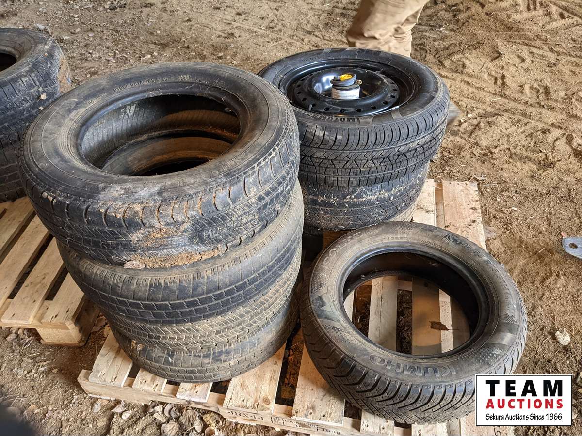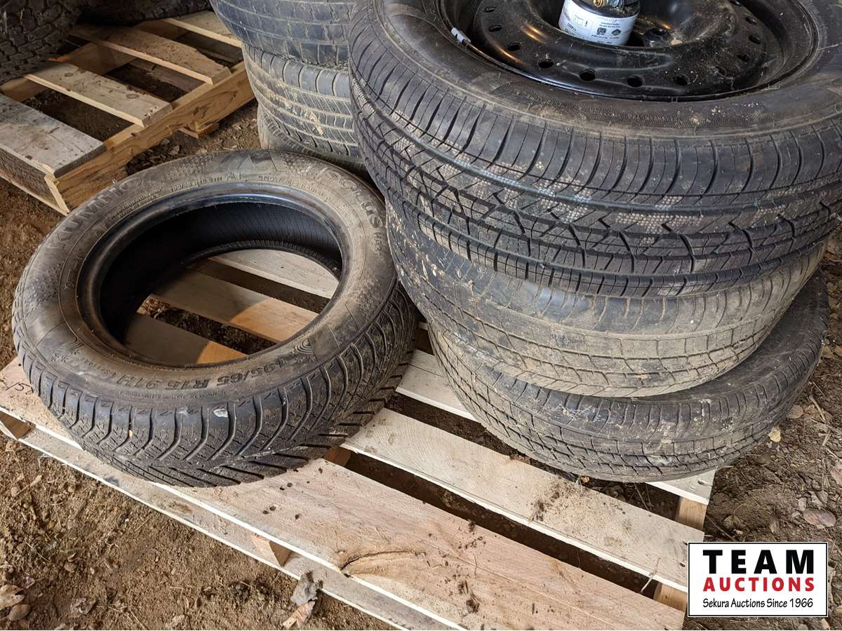 (2) 195/60R15, (4) 185/70R14, (1) new Tire with rim 195/65R15 came of KIA Soul, (1) 195/65R15, some small tires with rims