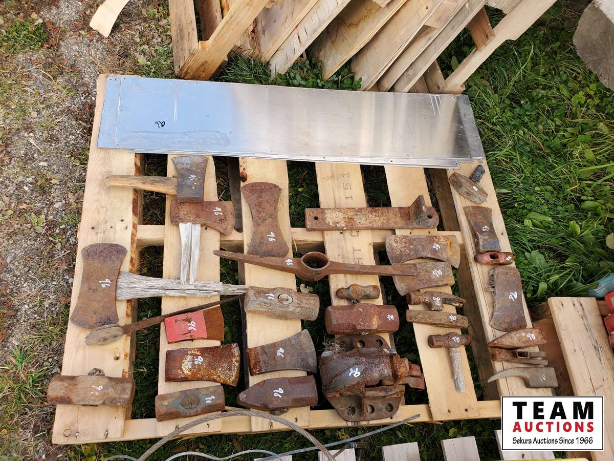 326 Assortment of Axe & Hammer Heads, Sheet Metal & Pintle Hitch