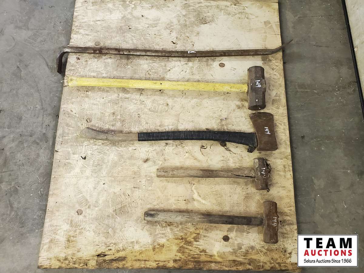 Pry bars, sledge hammer, axe