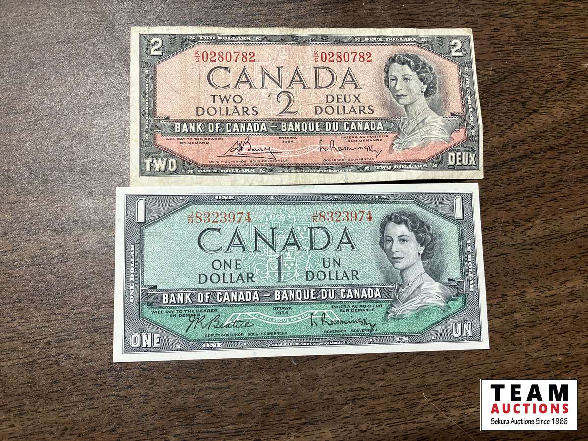 808 1954 Canadian $2 & $1 Bills