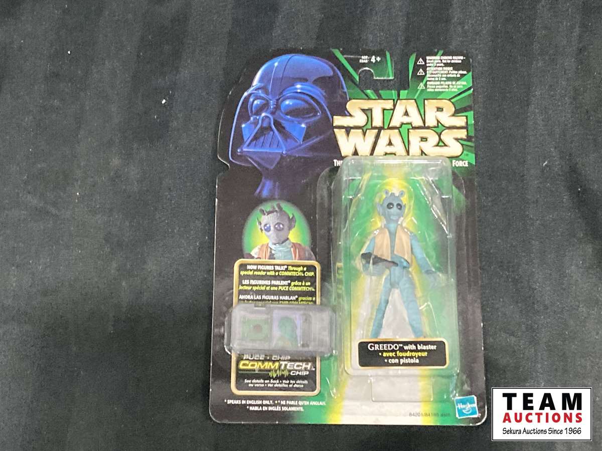 666 1999 MIB Hasbro Greedo Star Wars Commtech Action Figure with Blaster