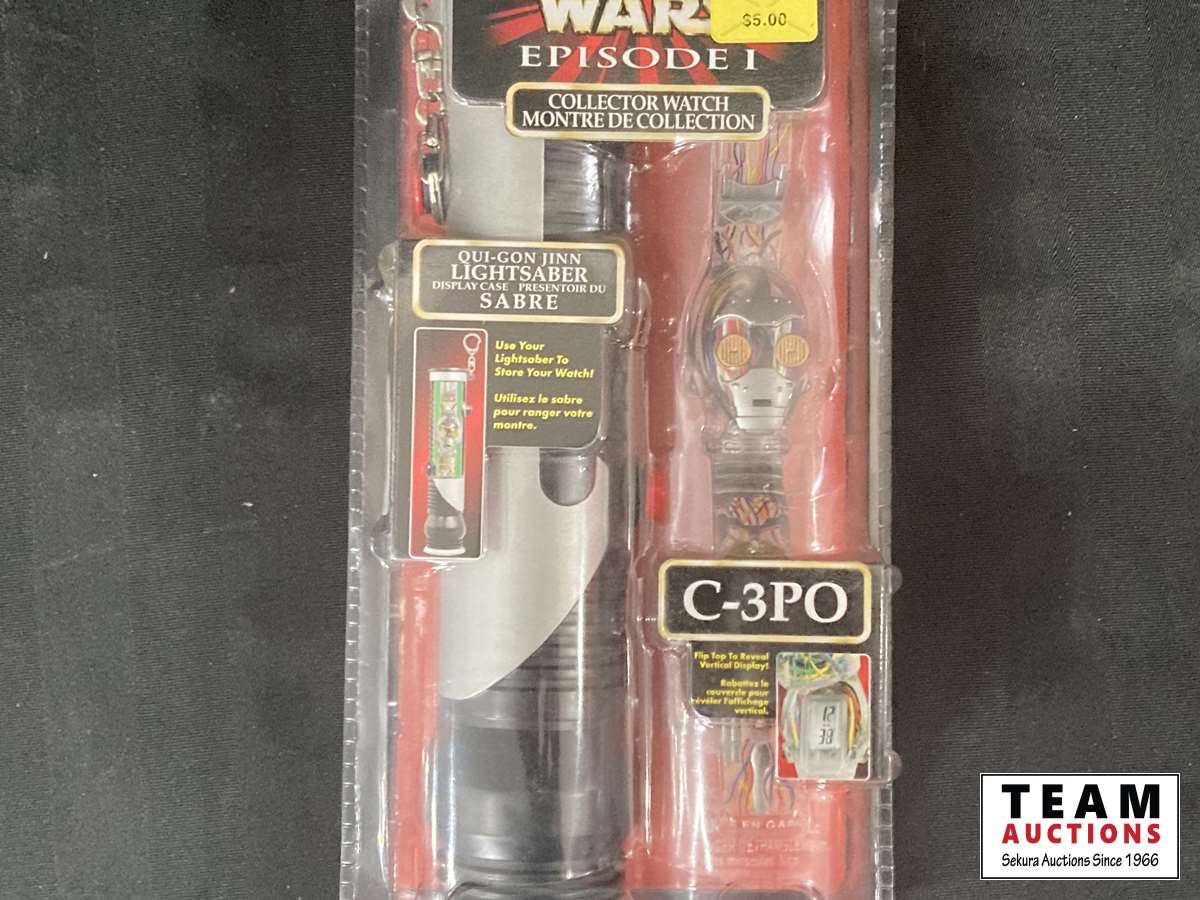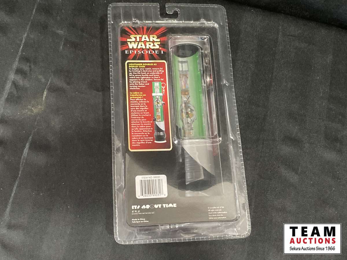 593 MIB C-3P0 Star Wars Collector Watch w/ Qui-Gon Jin Light Saber