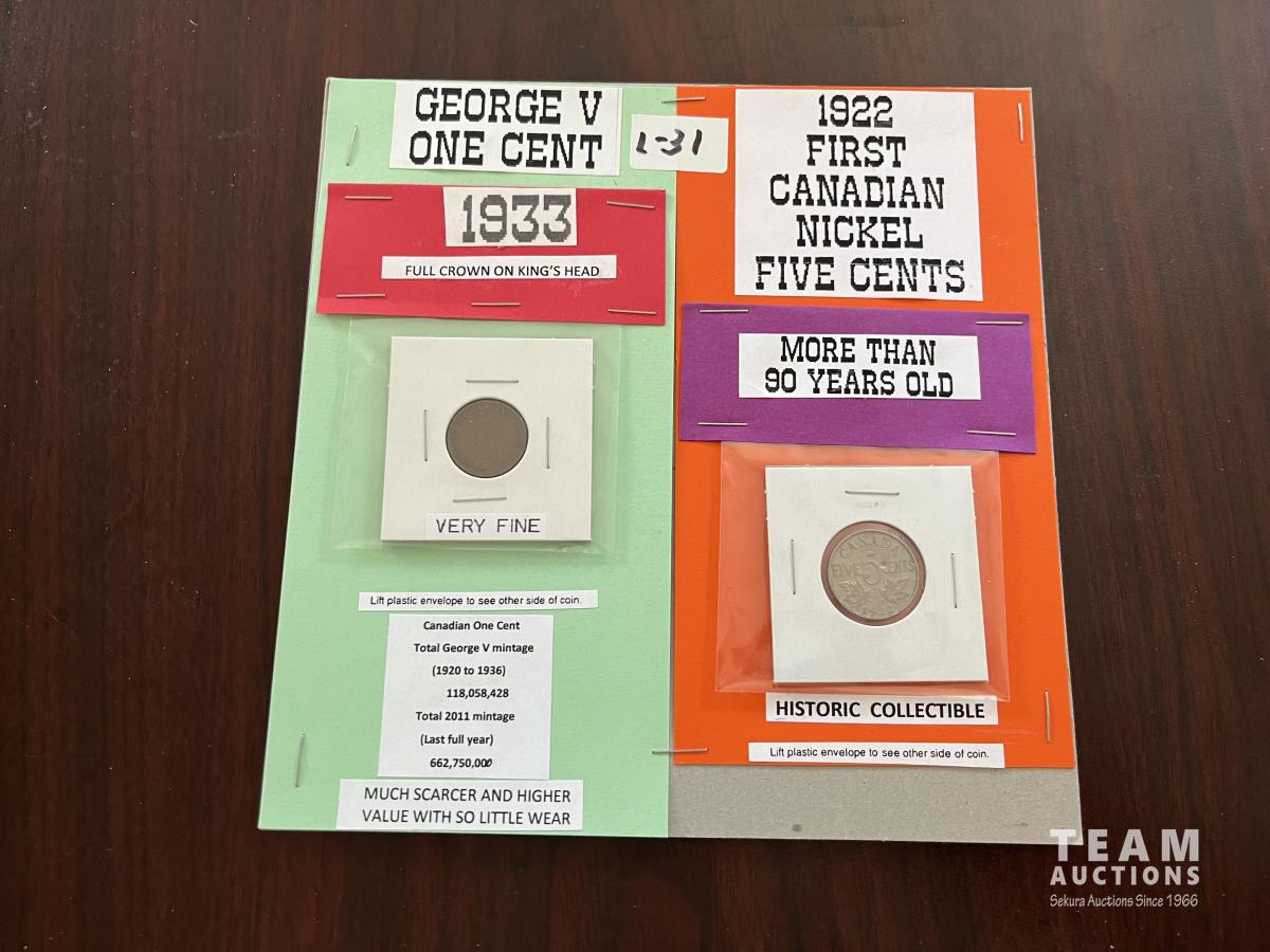 1039 First Canadian Nickel w/1933 One Cent Coin