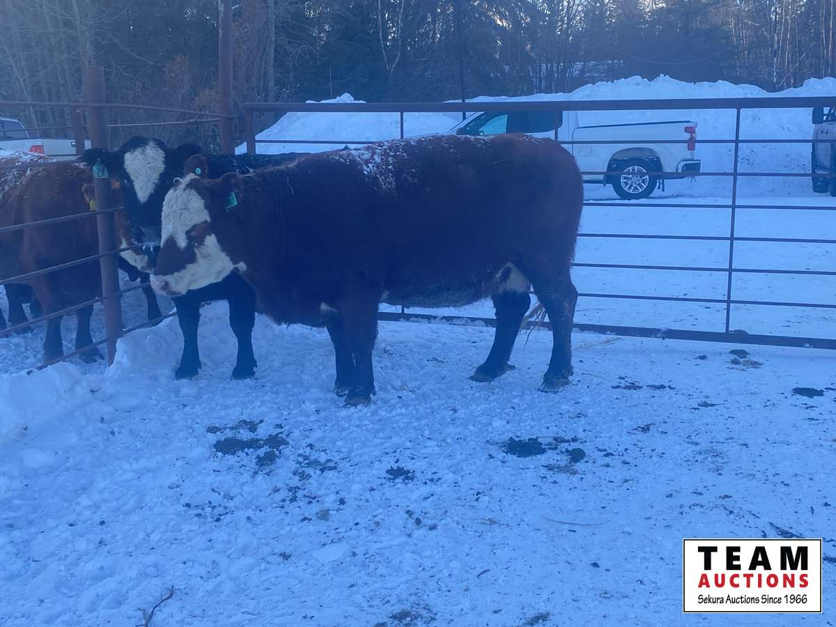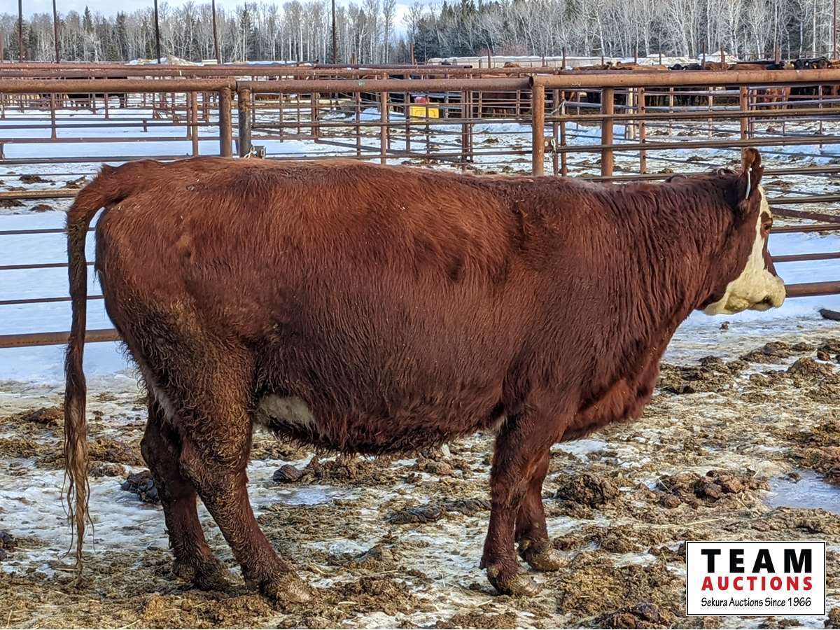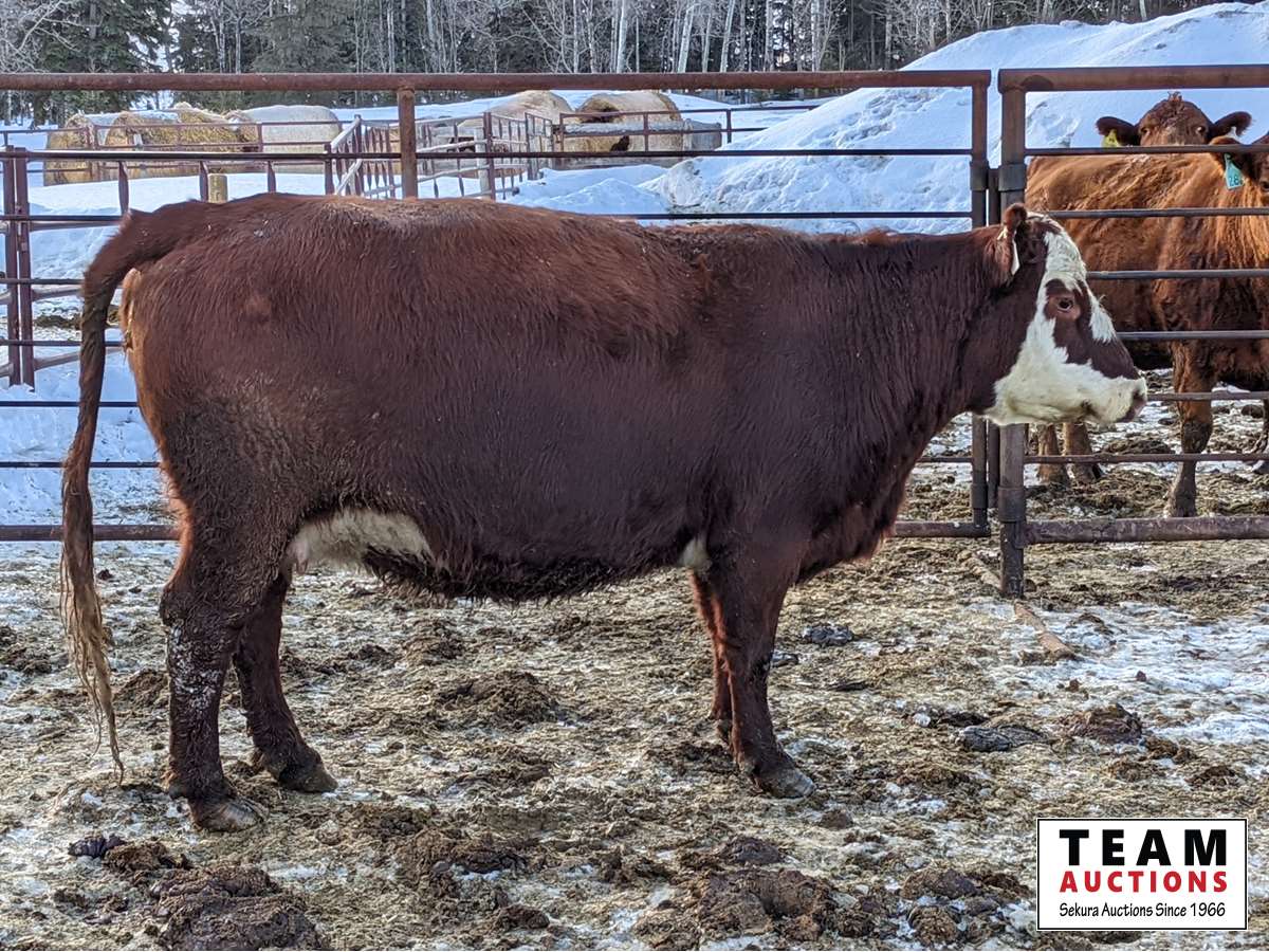 Calving date starts Apr 15th, bred to Simmental and Angus bulls, exposed for 65 days, preg checked and verified in calf by a veterinarian on Feb 3 & 4, 2022, 36C White ear tag
