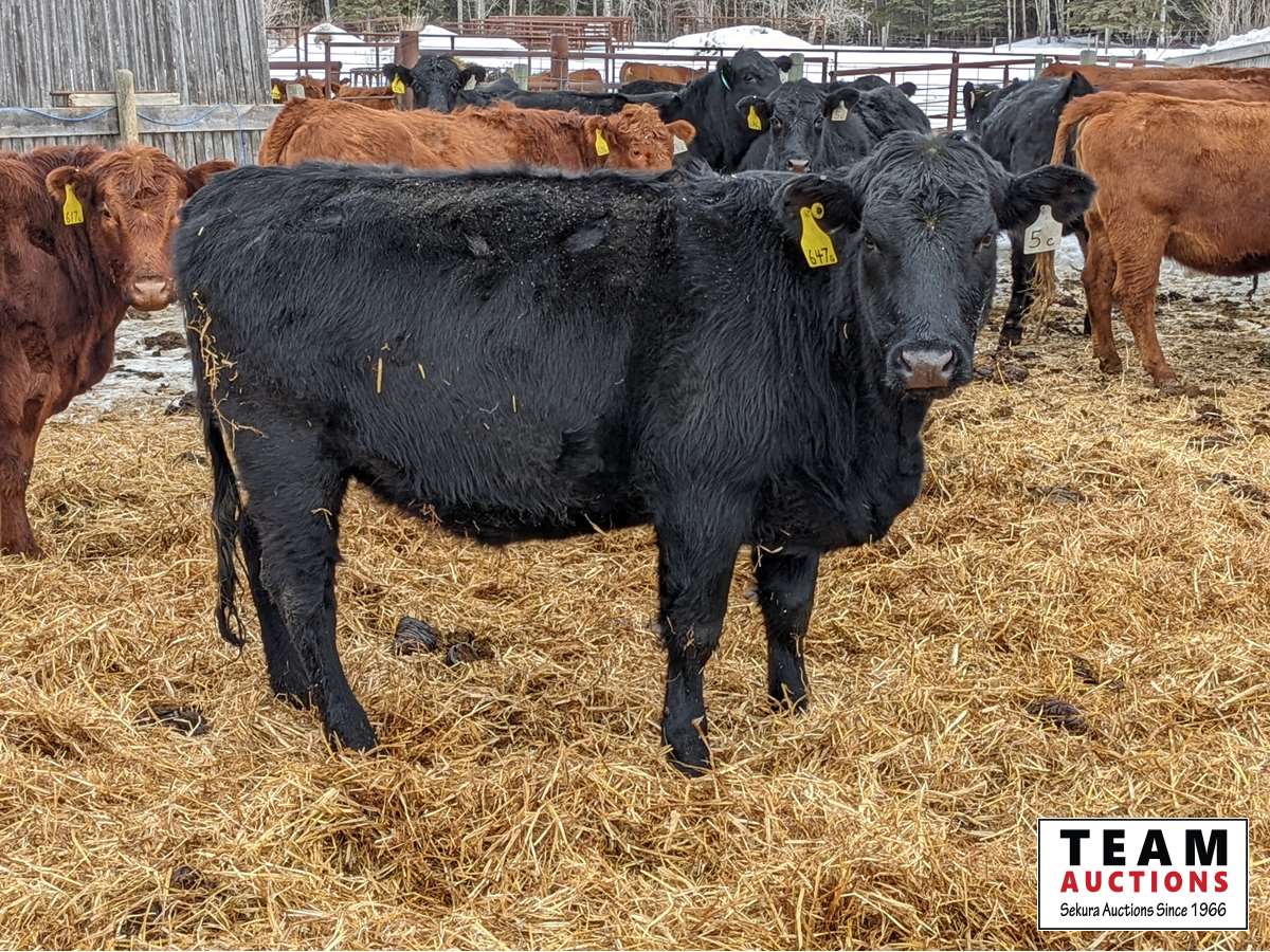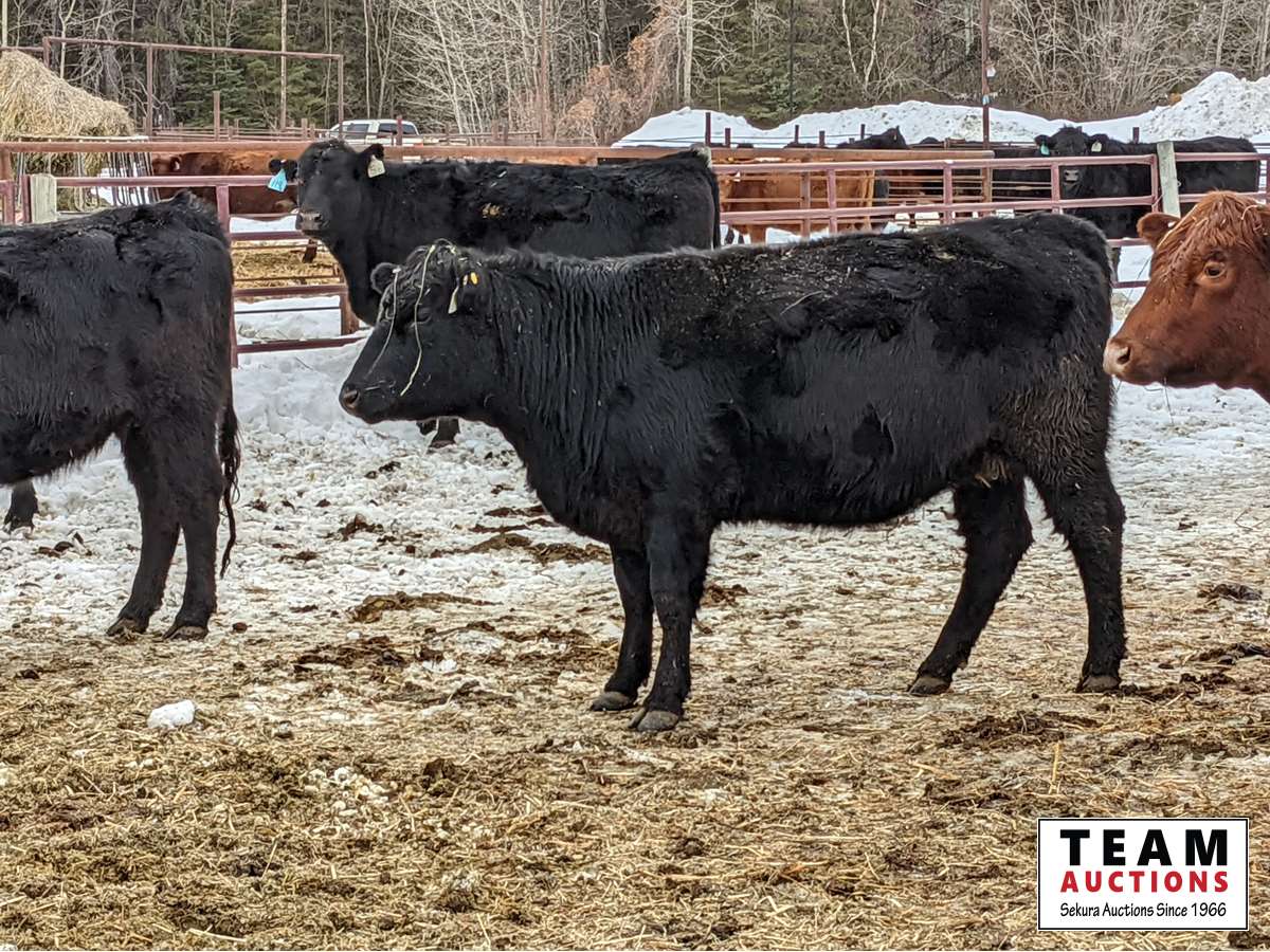 Calving date starts Apr 15th, bred to Simmental and Angus bulls, exposed for 65 days, preg checked and verified in calf by a veterinarian on Feb 3 & 4, 2022, all cows have 5C White ear tag
