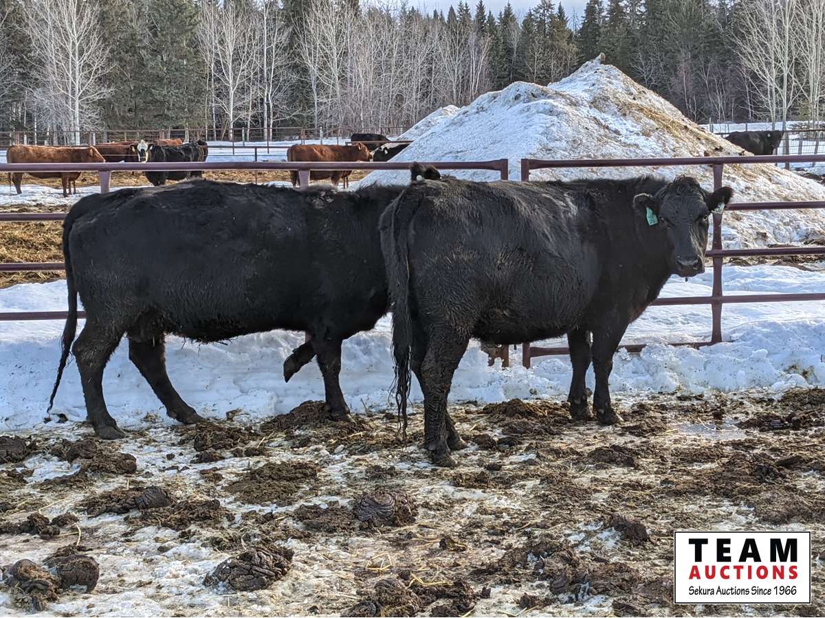 Calving date starts Apr 15th, bred to Simmental and Angus bulls, exposed for 65 days, preg checked and verified in calf by a veterinarian on Feb 3 & 4, 2022, all cows have 23C White ear tag