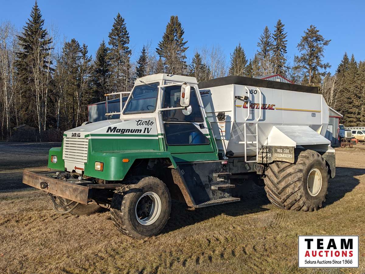 198 1992 International 4900 Loral Magnum IV Floater Feed Truck W/ Cattlelac 350 Grinder Mixer