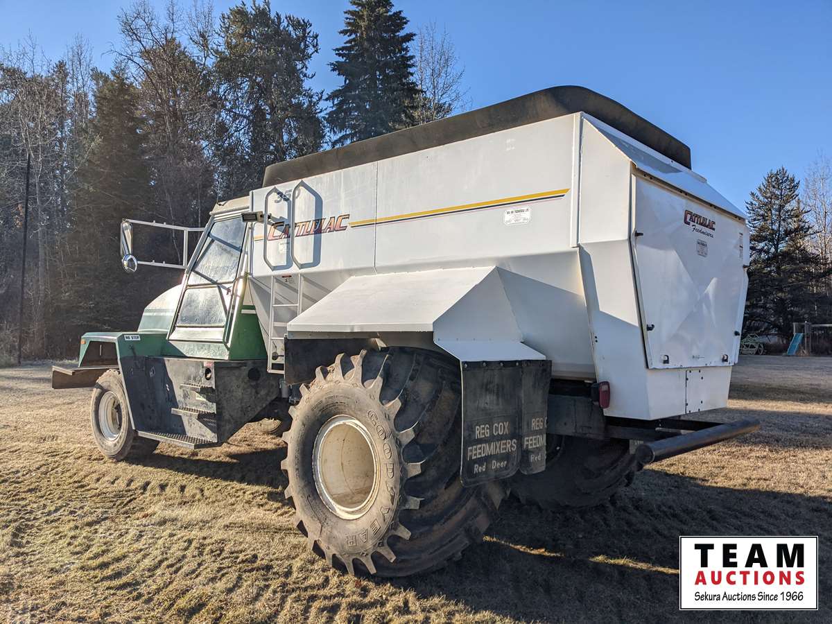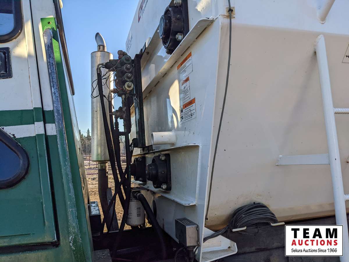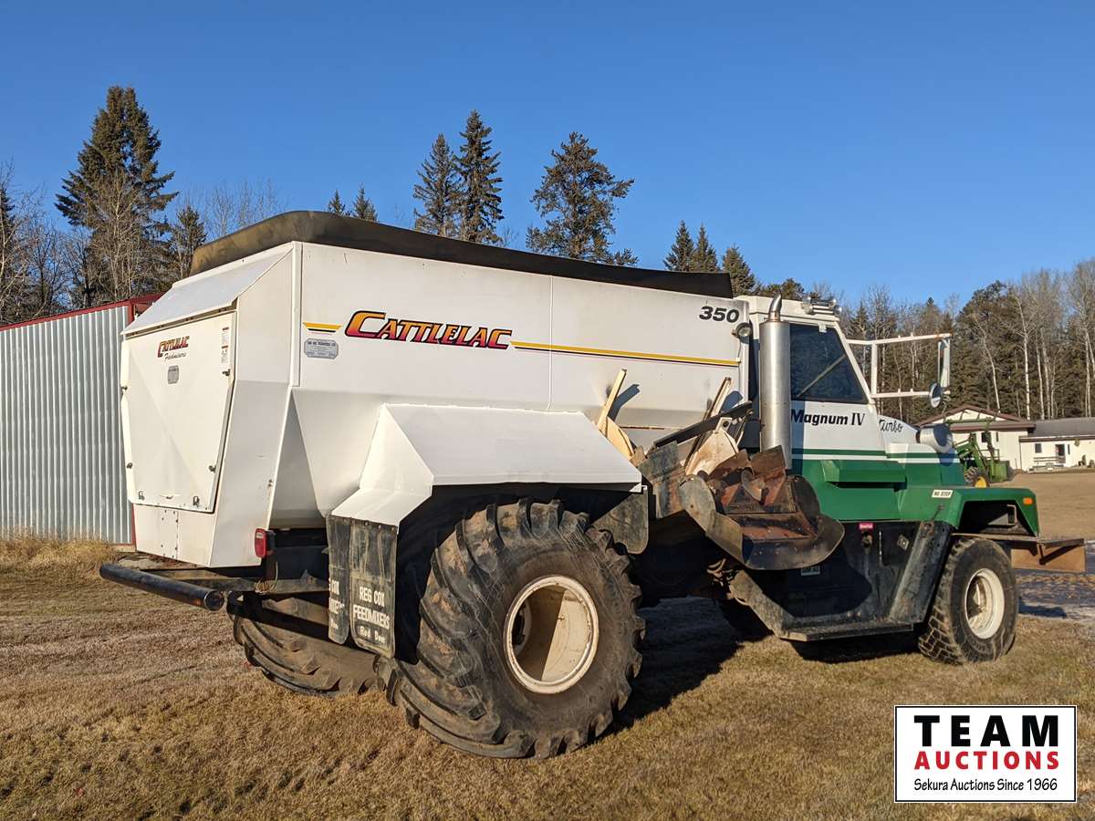 466 cu inch 7.6 L, 6 cylinder, diesel, Allison MT643 4 speed automatic transmission, spring suspension, 188 inch WB, 9:08 ratio, 445/65R22.5 front & 66 x 43.00-25NHS rear tires, 2002 Cattlelac 350 mixer box, s/n 02 HZ 20505, 4 auger, Lebow 9TL displays, Allweigh Weightronix scale, s/n 7906