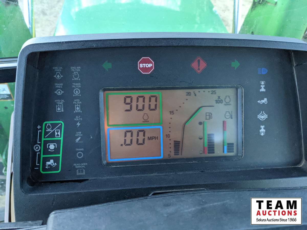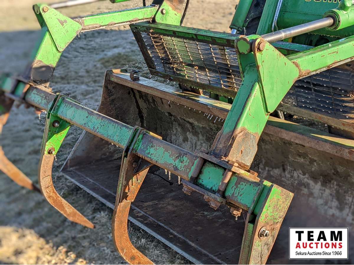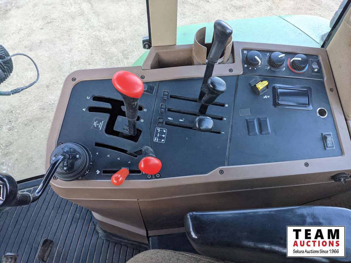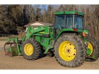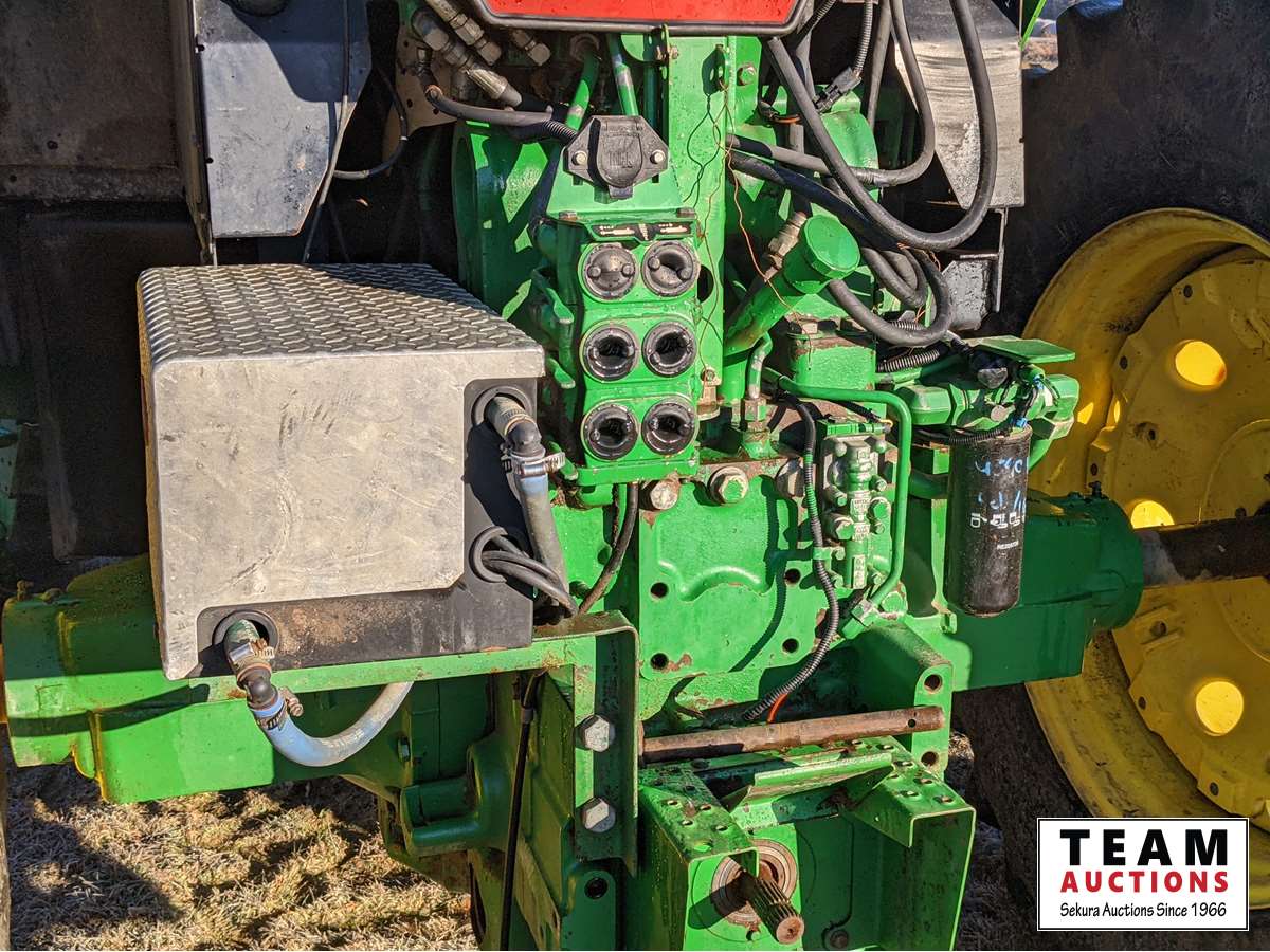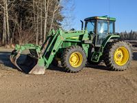 John Deere 740 loader, Q/A 8 ft bucket, grapple, joystick, 16 speed PowrQuad transmission, 3 hydraulic outlets, 540/1000 PTO, engine heater, 16.9-28 front & 520/85R38 rear tires