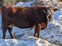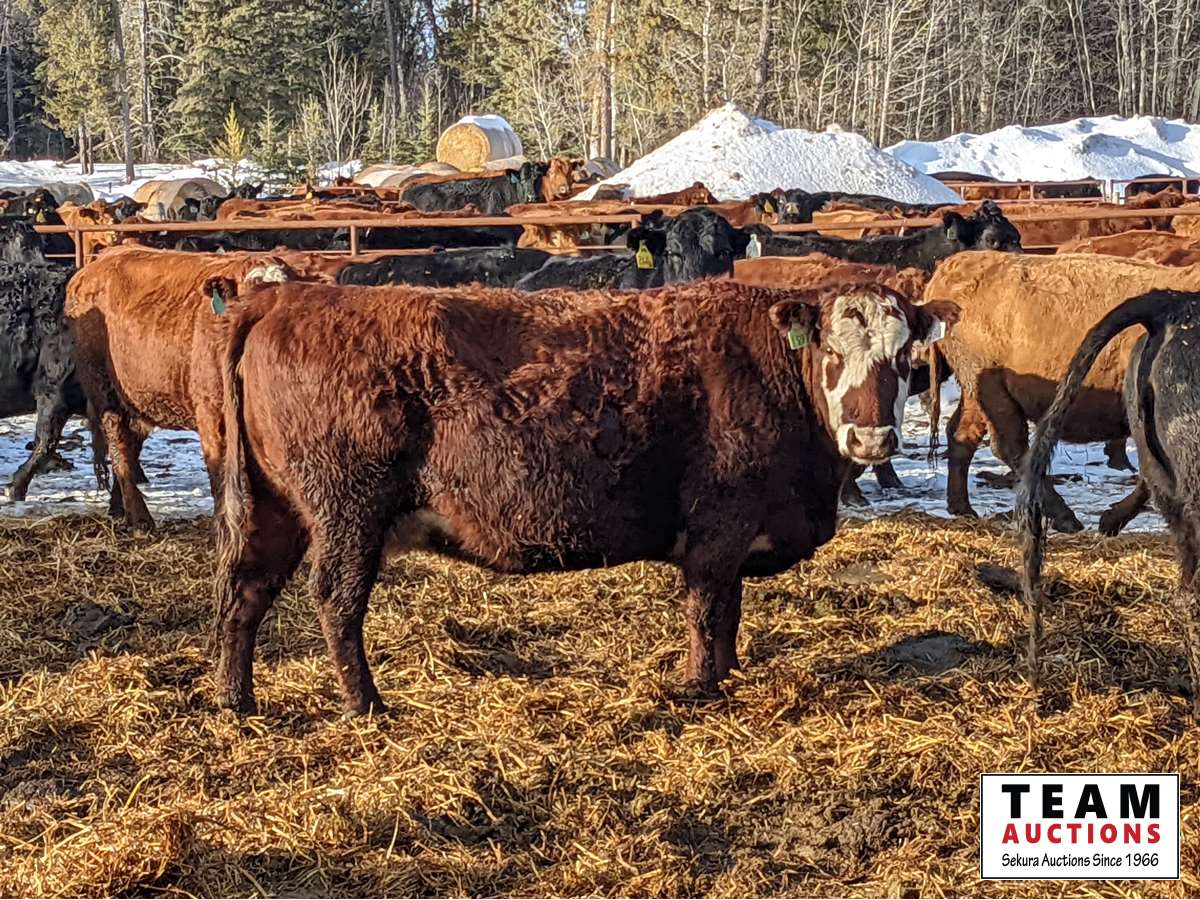 Calving date starts Apr 15th, bred to Simmental and Angus bulls, exposed for 65 days, preg checked and verified in calf by a veterinarian on Feb 3 & 4, 2022, all cows have 33C White ear tag