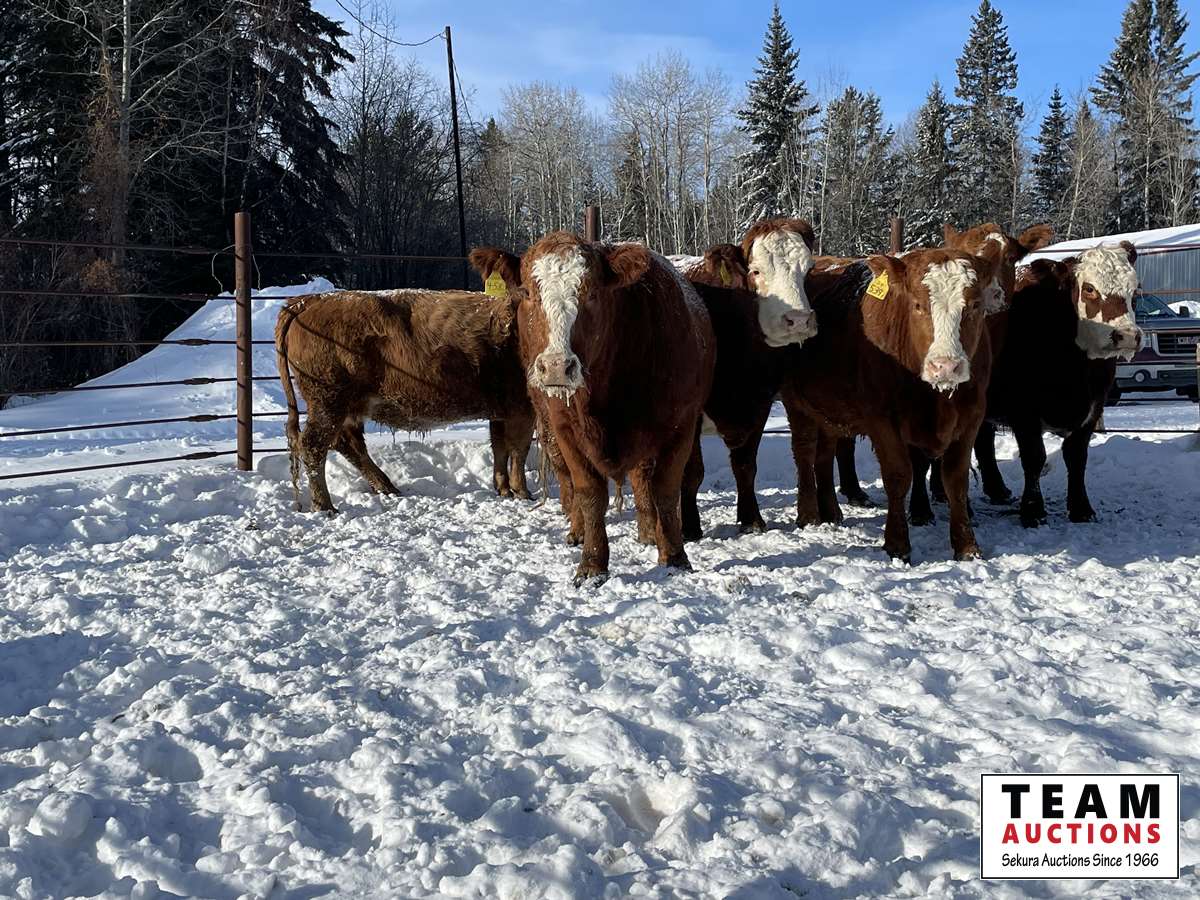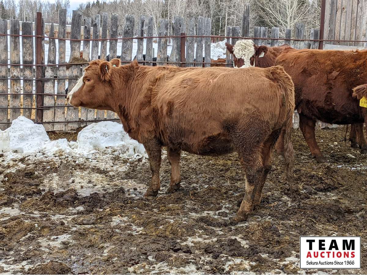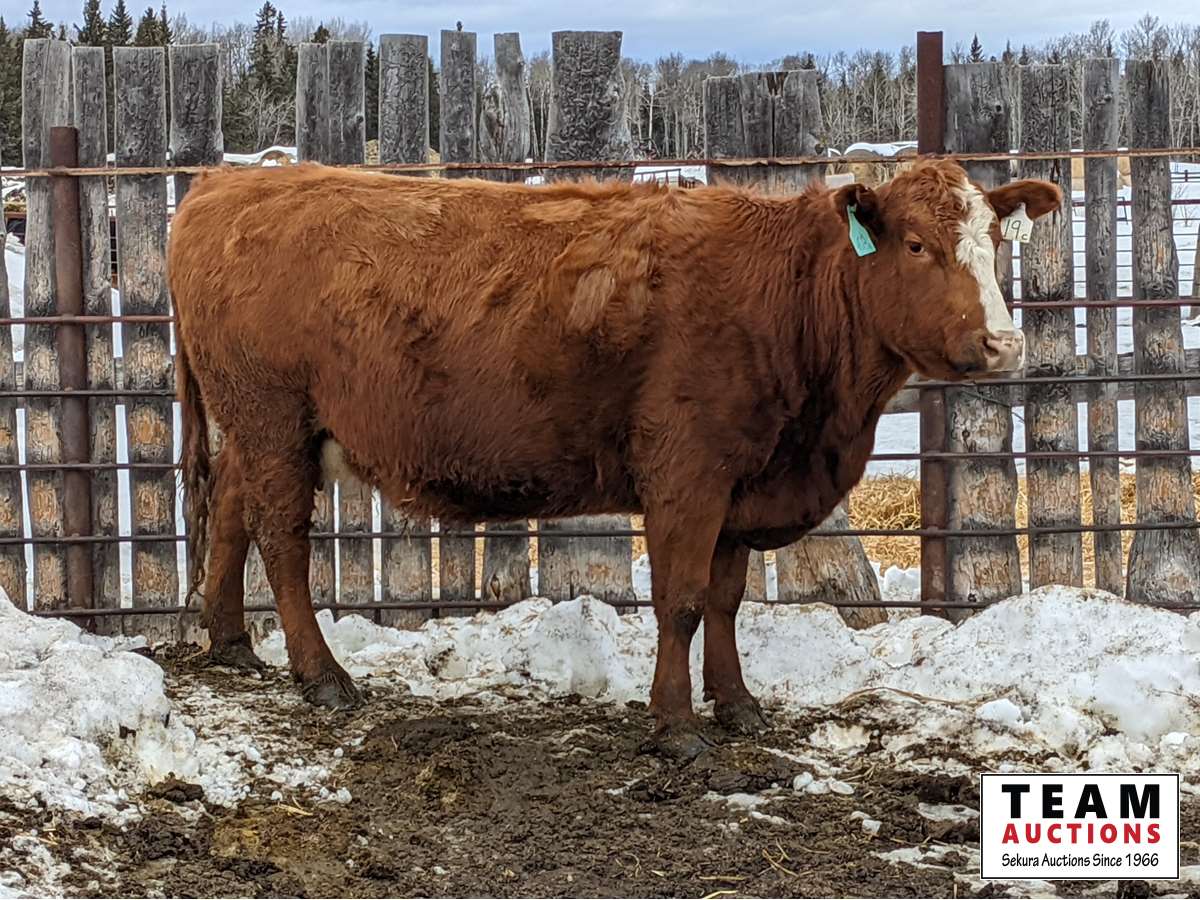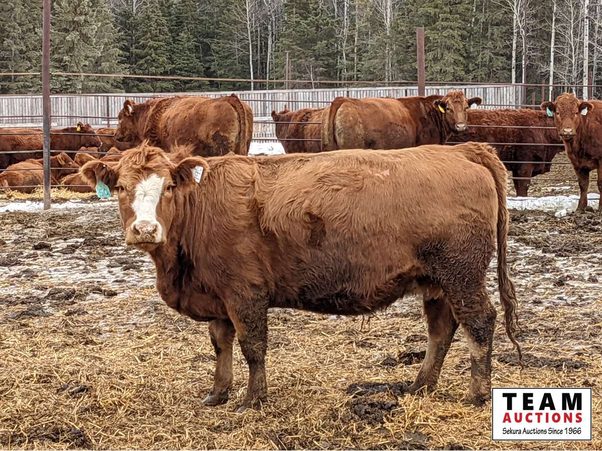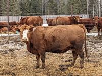 Calving date starts Apr 15th, bred to Simmental and Angus bulls, exposed for 65 days, preg checked and verified in calf by a veterinarian on Feb 3 & 4, 2022, all cows have 19C White ear tag
