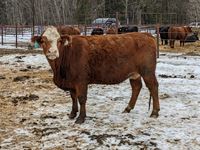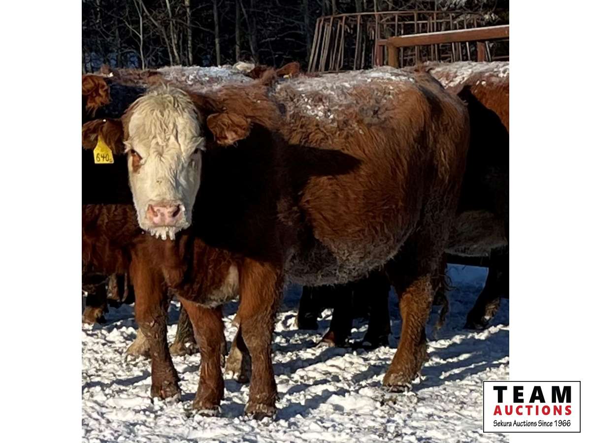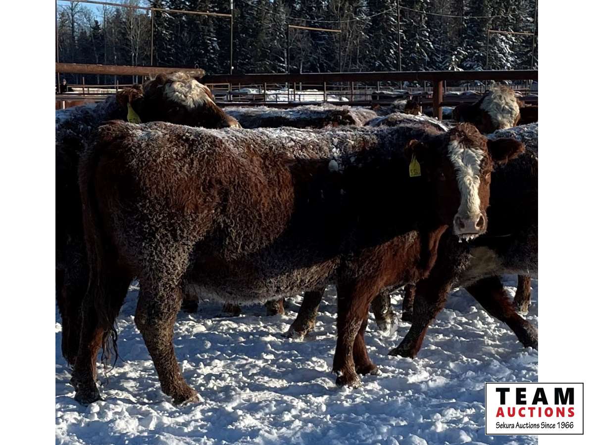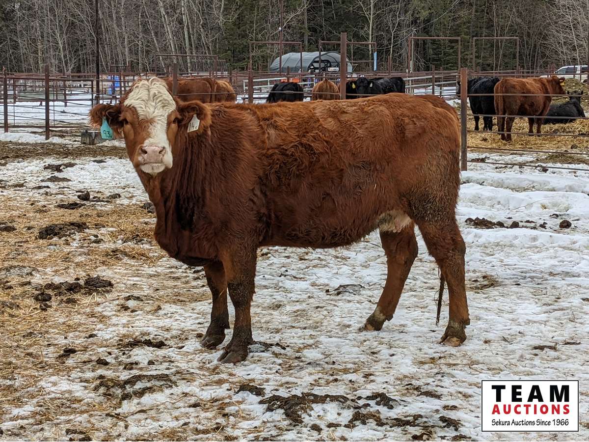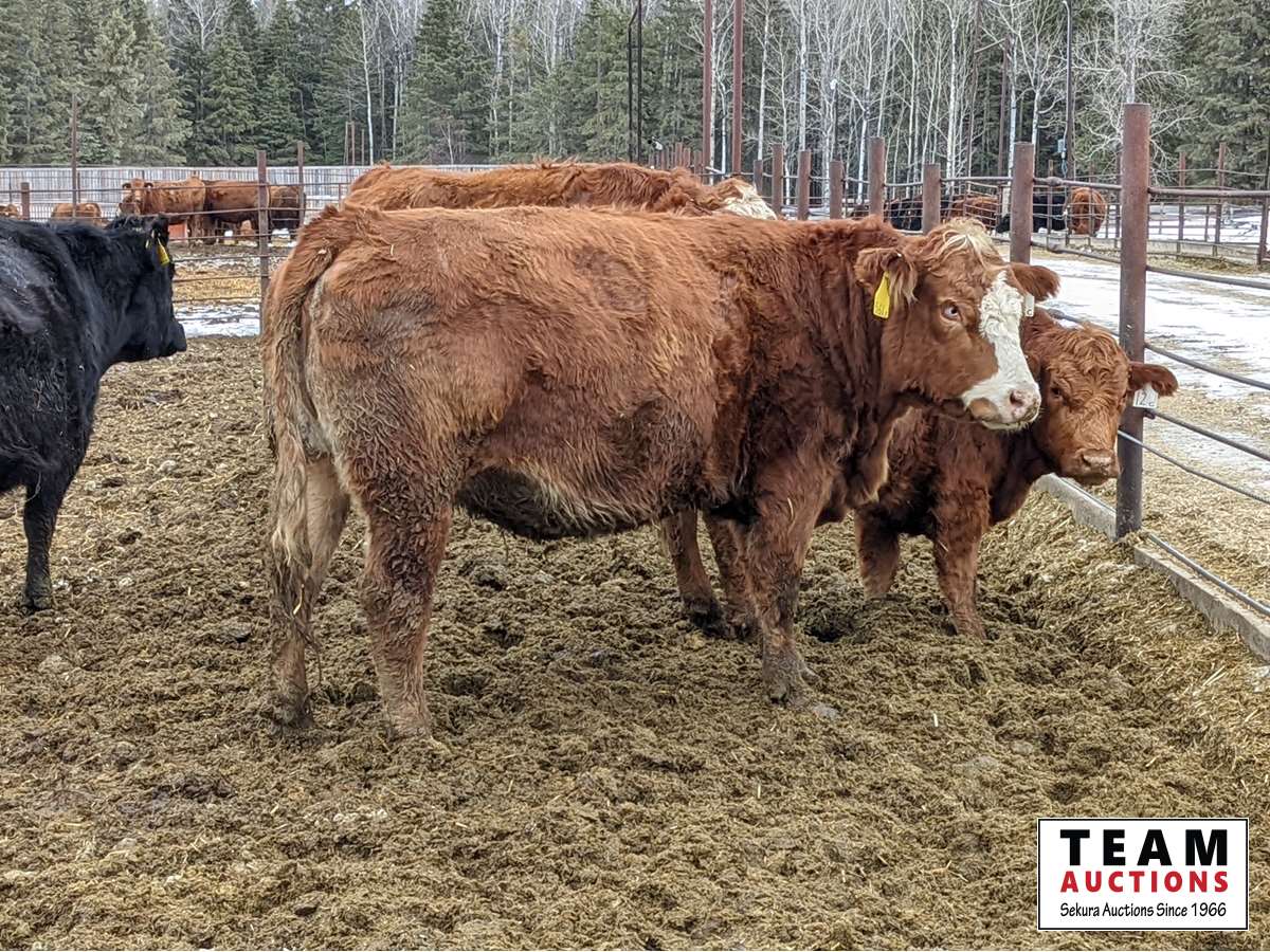 Calving date starts Apr 15th, bred to Simmental and Angus bulls, exposed for 65 days, preg checked and verified in calf by a veterinarian on Feb 3 & 4, 2022, all cows have 14C White ear tag