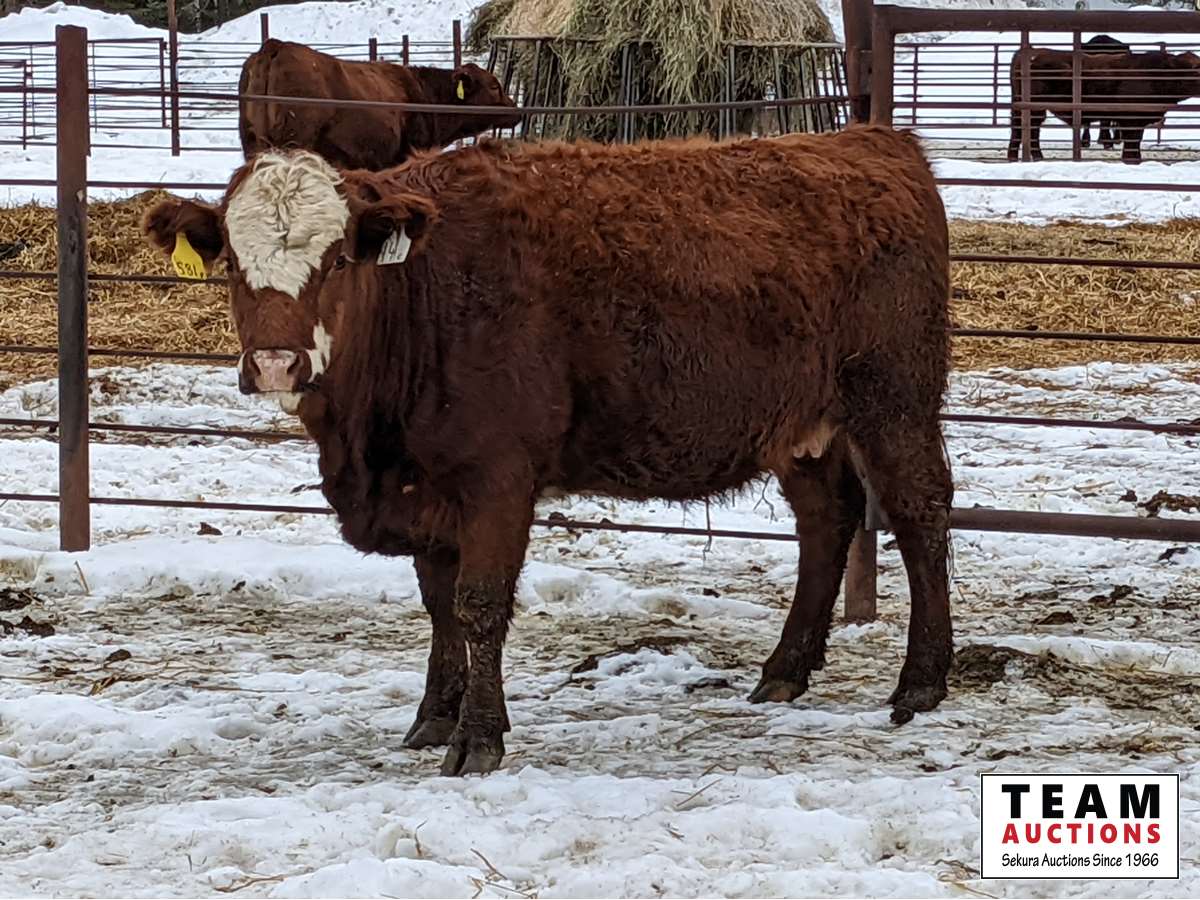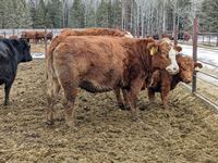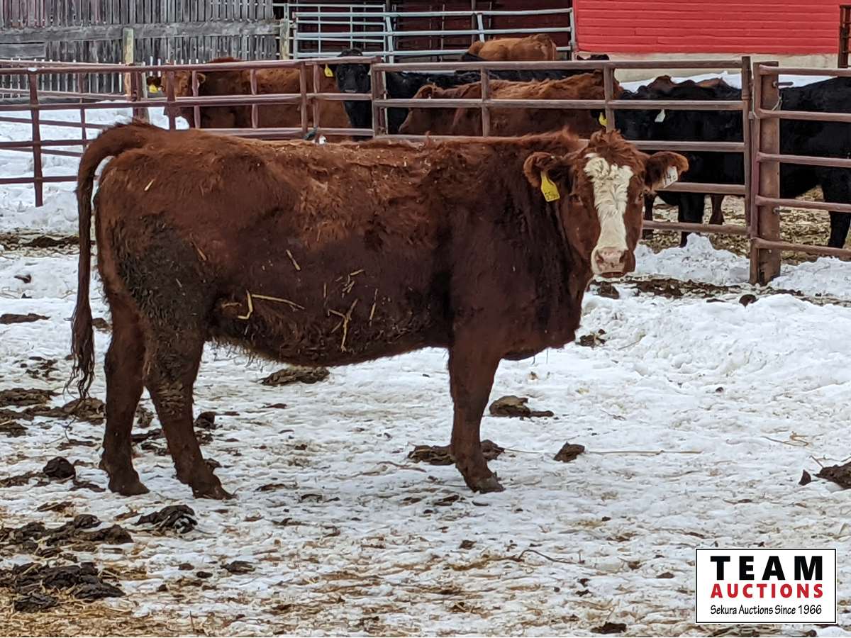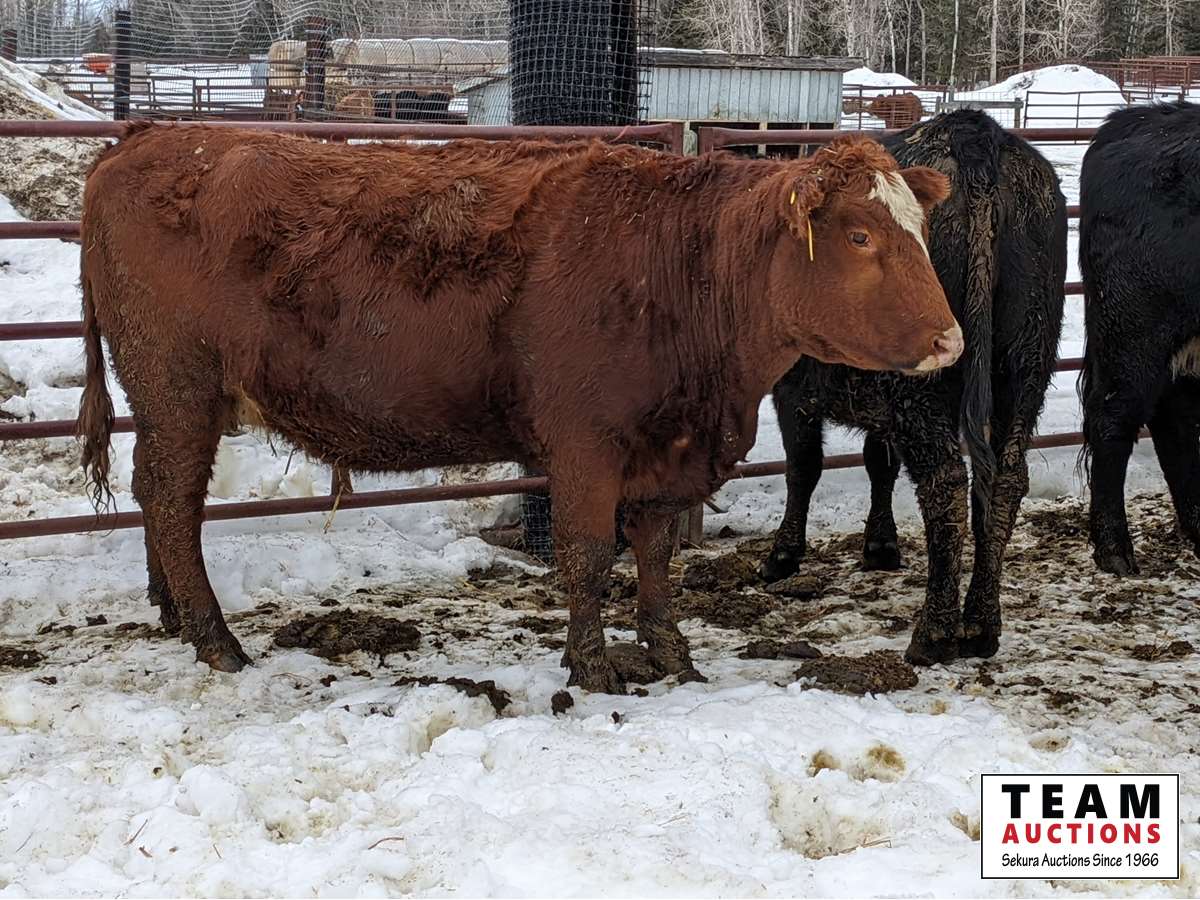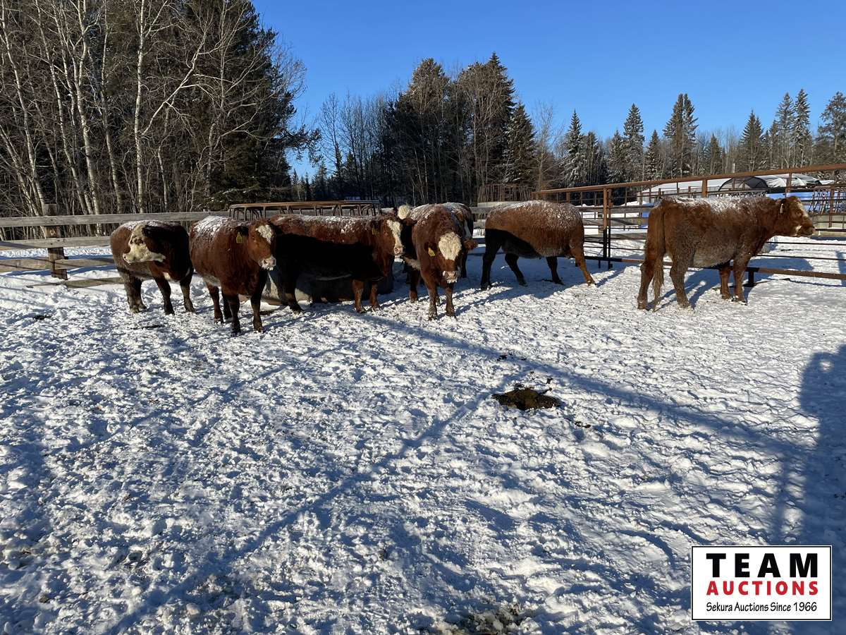 Calving date starts Apr 15th, bred to Simmental and Angus bulls, exposed for 65 days, preg checked and verified in calf by a veterinarian on Feb 3 & 4, 2022, all cows have 14C White ear tag