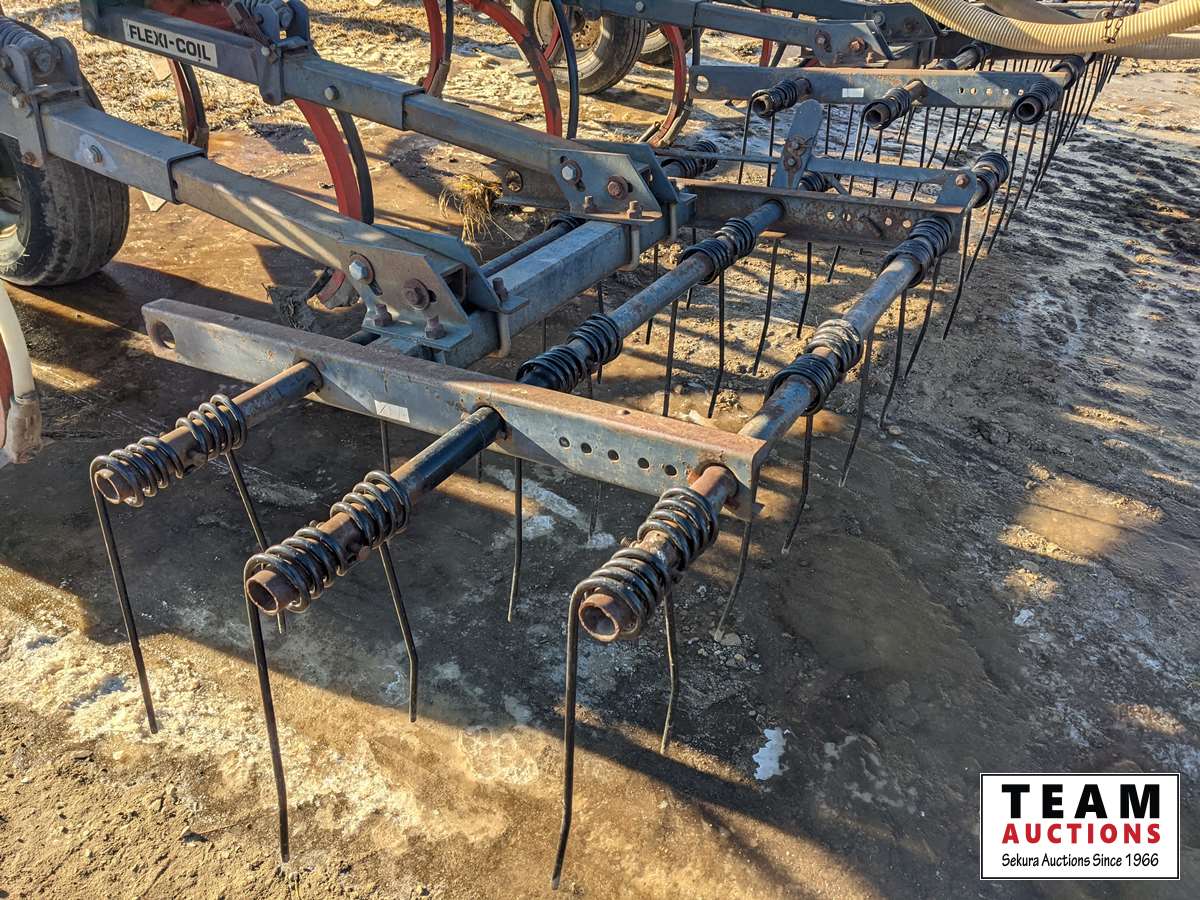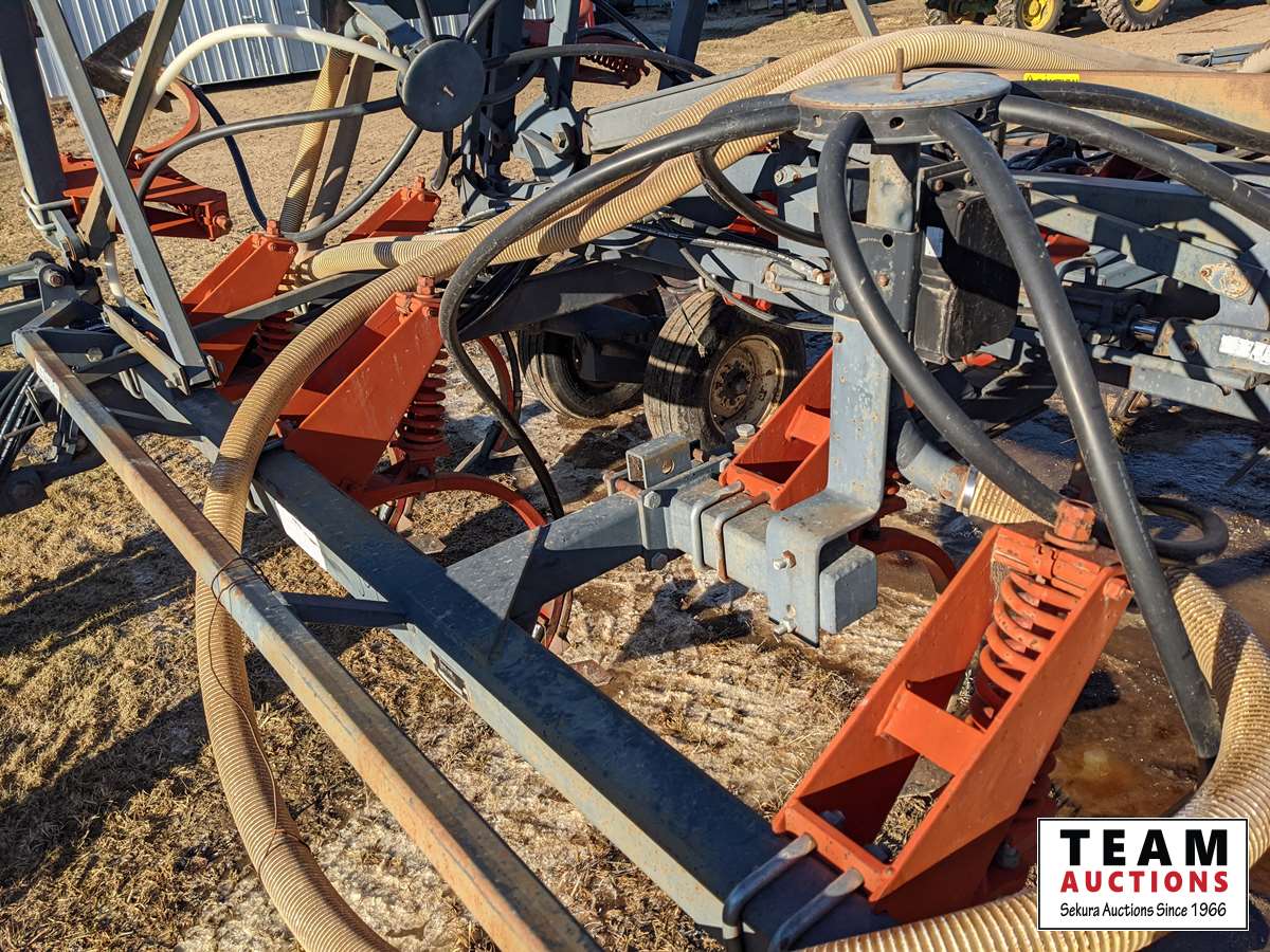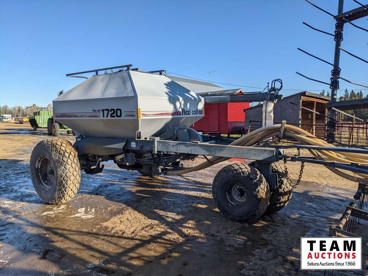 12 inch spacing, sweeps, 3 bar harrows, 9.5 L -15, Flexi-Coil 1720 tow behind grain cart, s/n G1720A0-N049737, 2 compartment, 172 bushel, 16.5 L -16 front & 18.4-26 rear tires