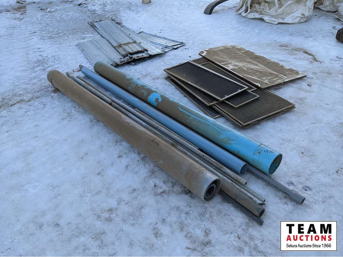 53 Miscellaneous Poly Pipe, Screens, Peg Board & V Rib Metal