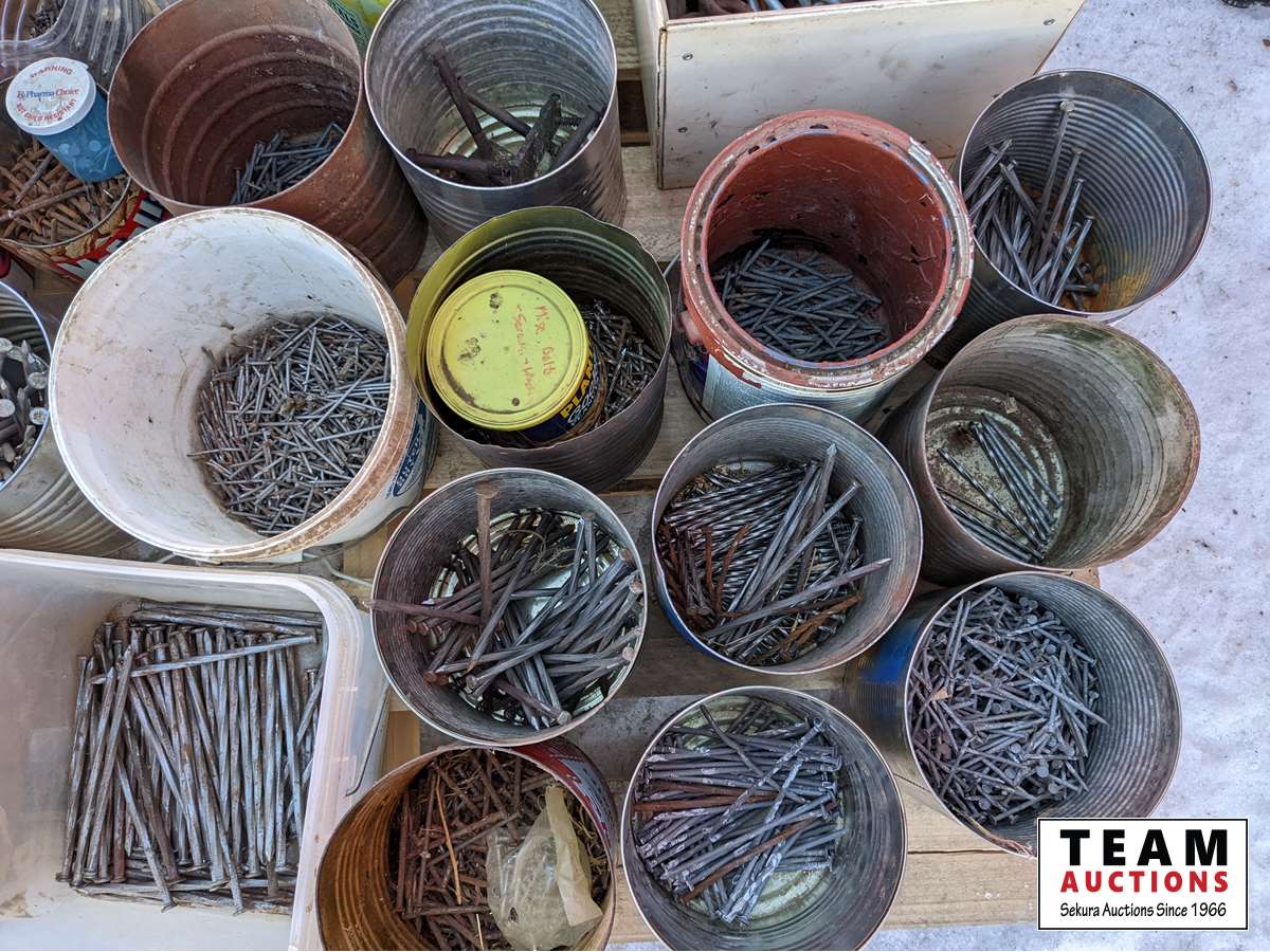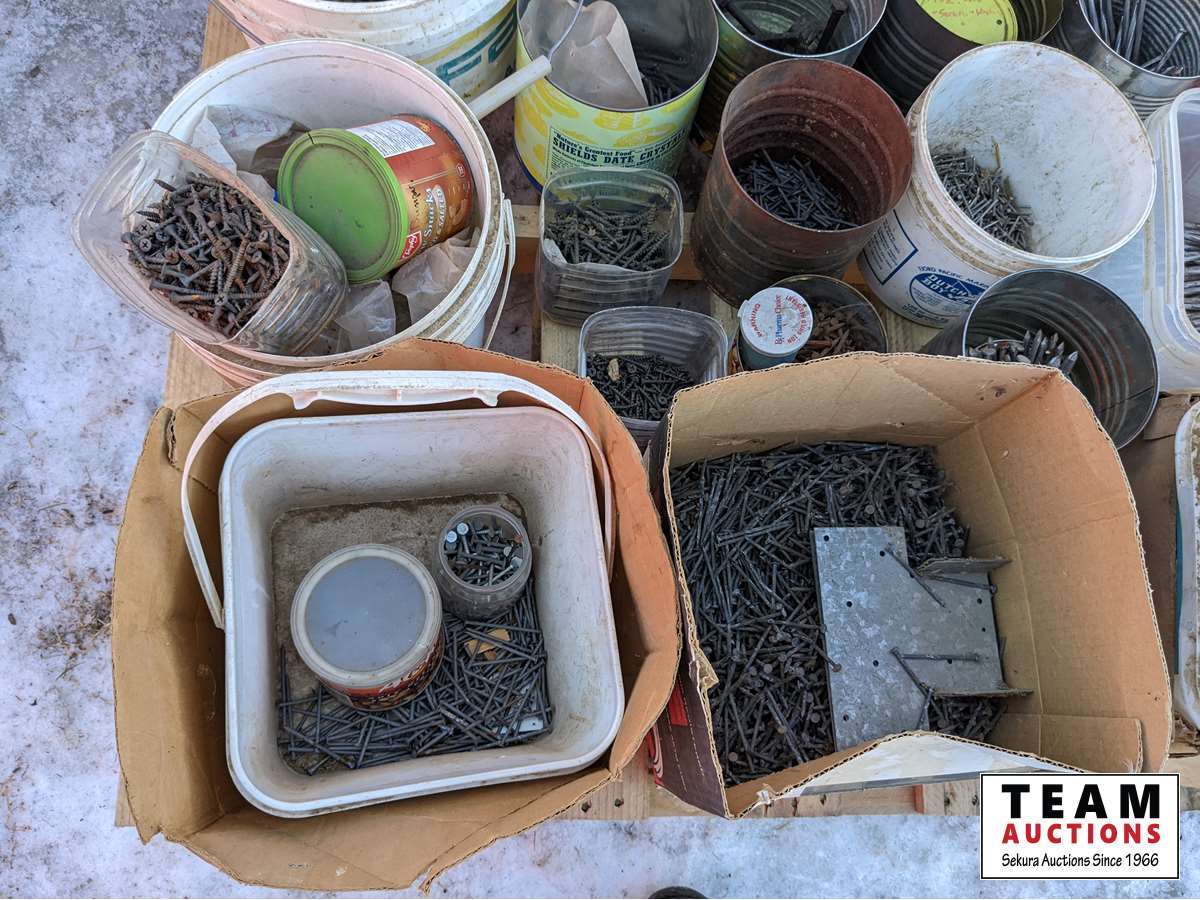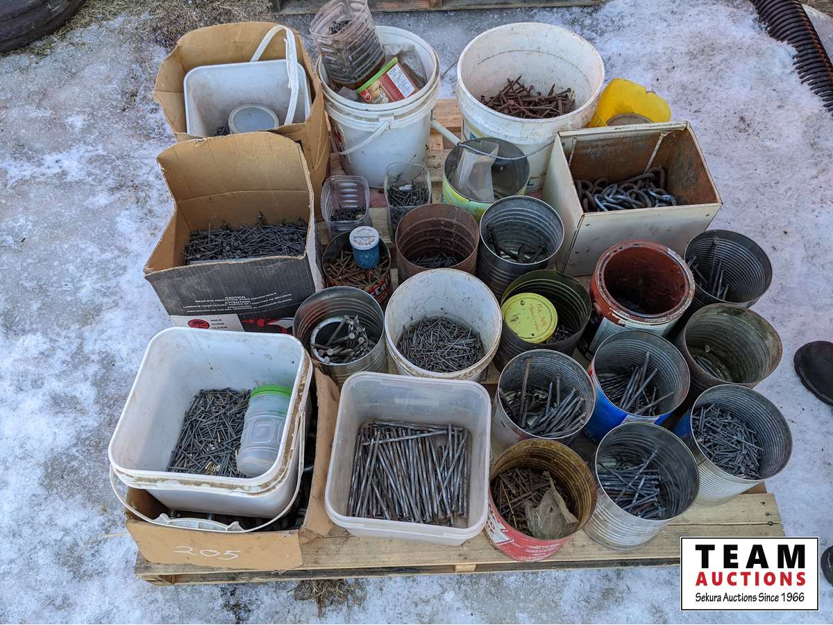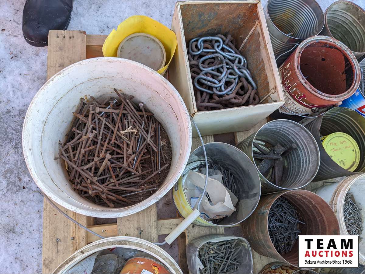 67 Pallet of Assorted Nails, Screws & Harrow Chain