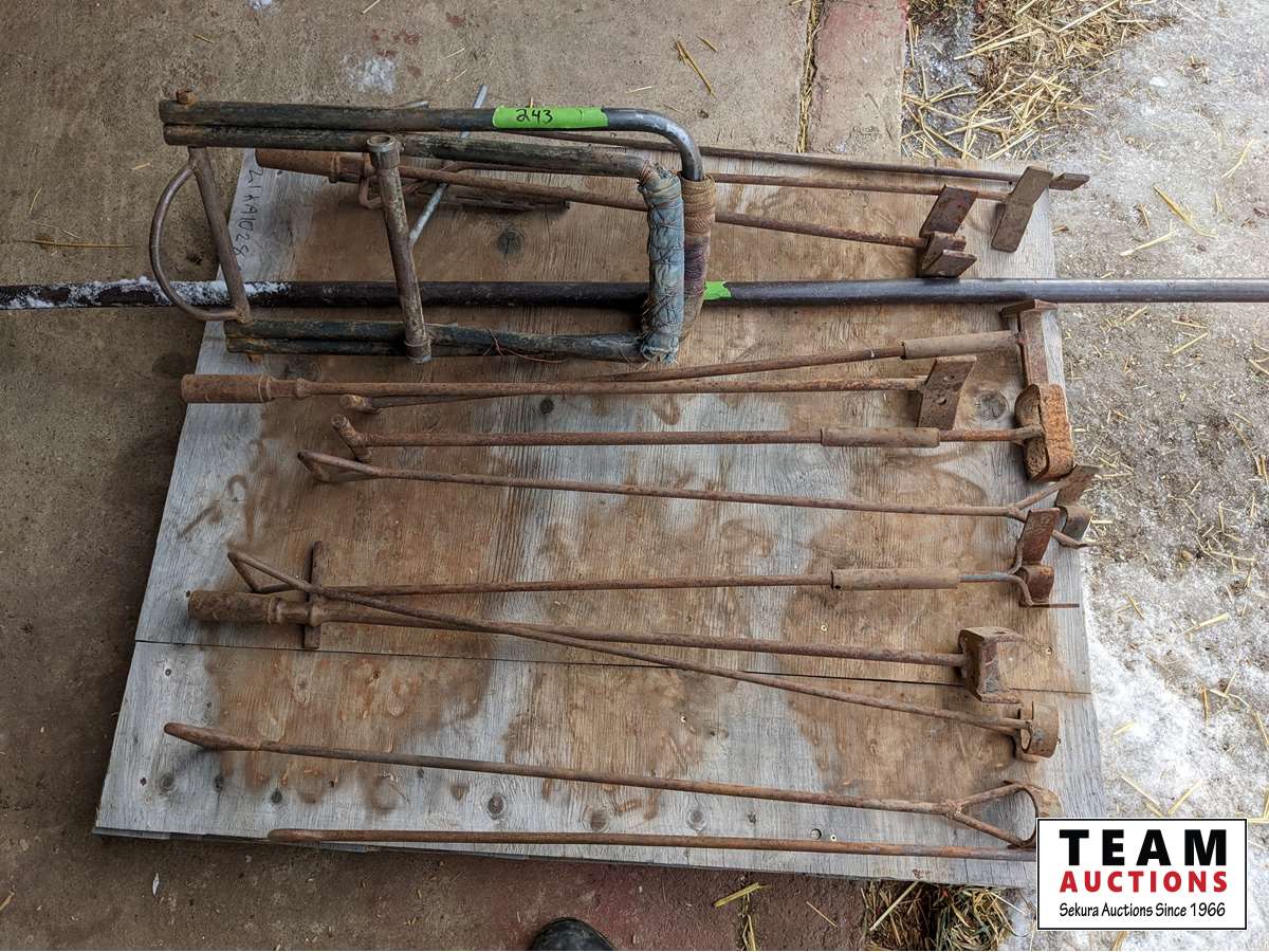 108 Qty of Branding Irons, Hip Lifter & Large Pry Bar
