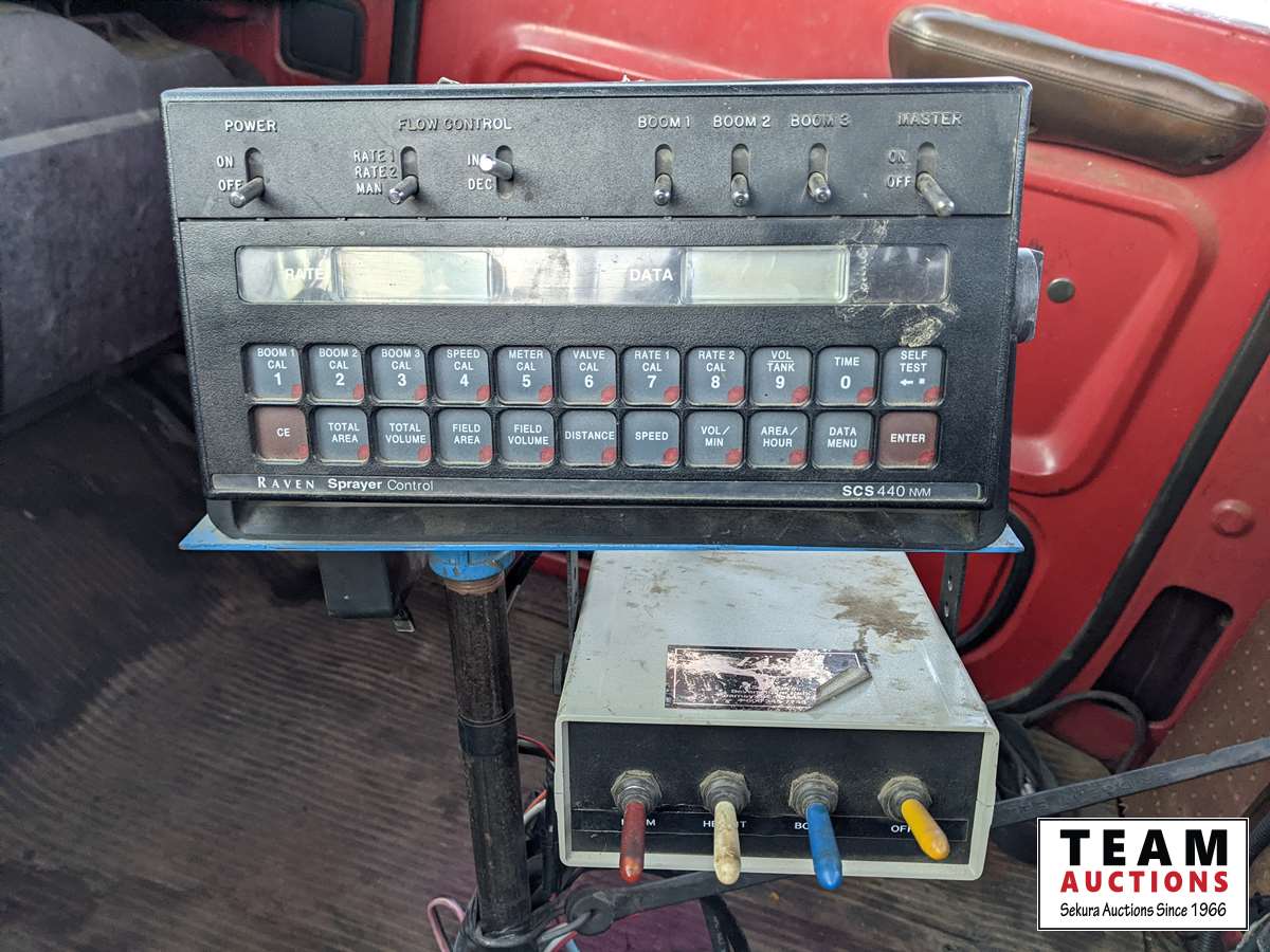Caterpillar 3208, 210 HP, 10.4 L, V8, diesel, Allision MT653 5 speed automatic transmission, spring suspension, 9000 lb front, 18500 lb rear, 150 inch WB, 11R22.5front & 385/65R22.5 rear tires, Service Systems Engineering sprayer, Raven SCS440 cab controls, folding booms, ploy tank, single nozzle, Honda GX240, 8 HP gas engine