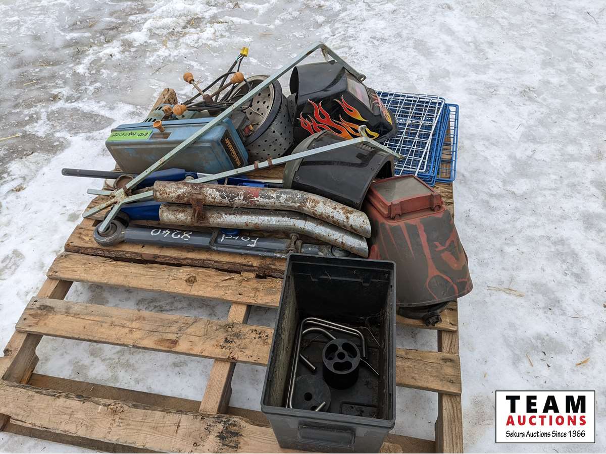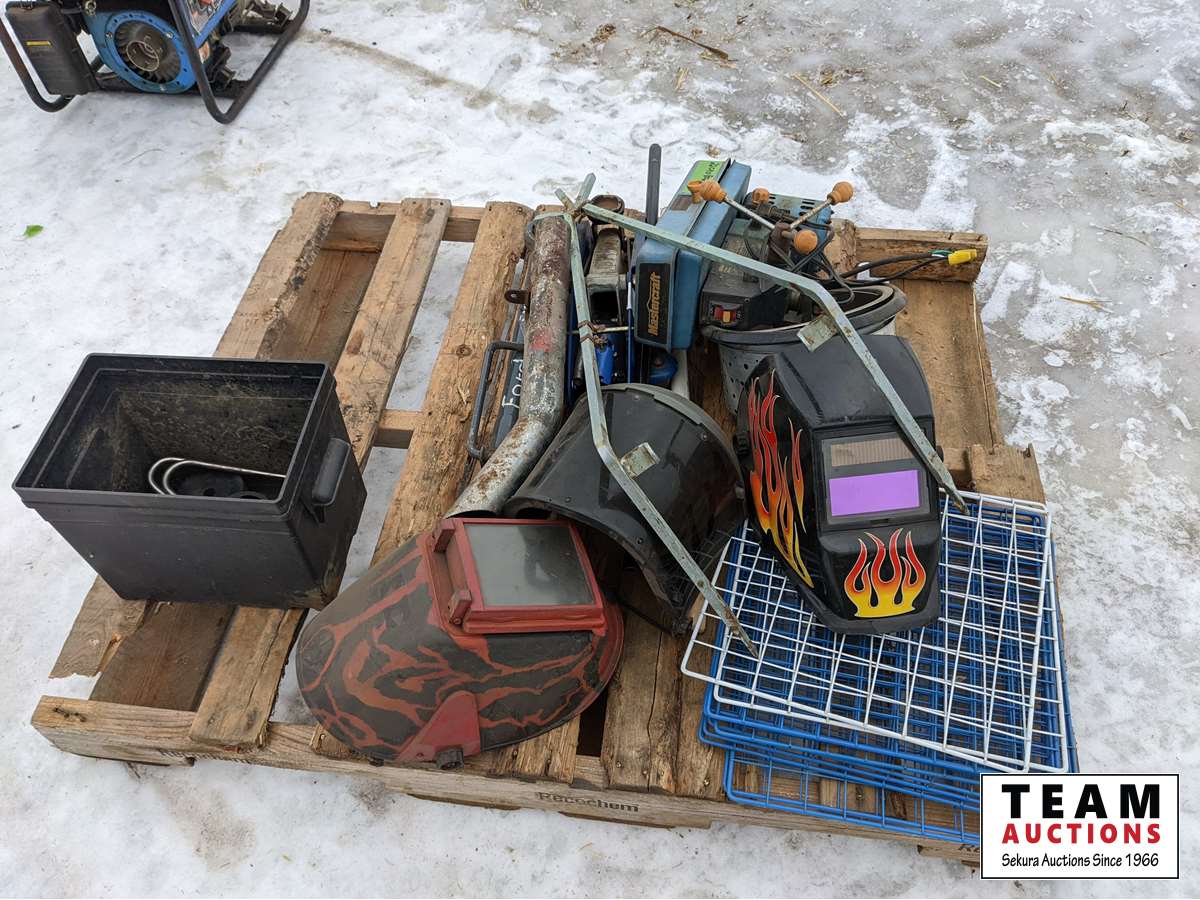 71 Welding Helmets, Face Shield, Battery Box, Floor Jack, & Other Miscellaneous Items