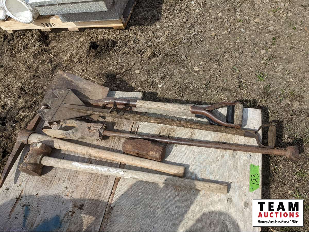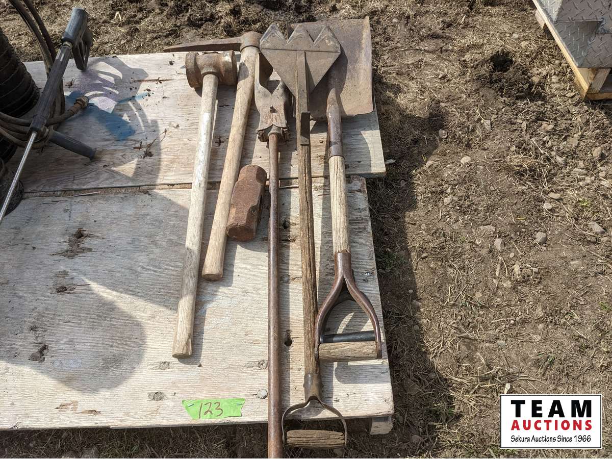 50 Qty of Picks, Hammers, Shovels, Post Hole Auger, Hay Knife