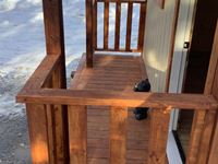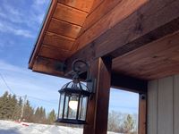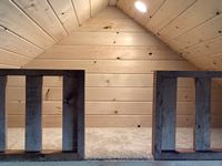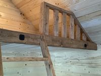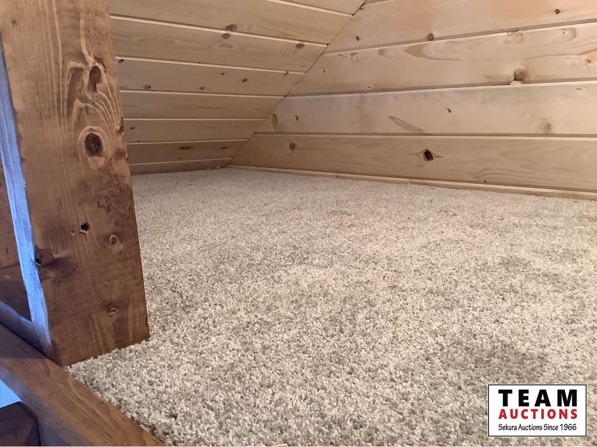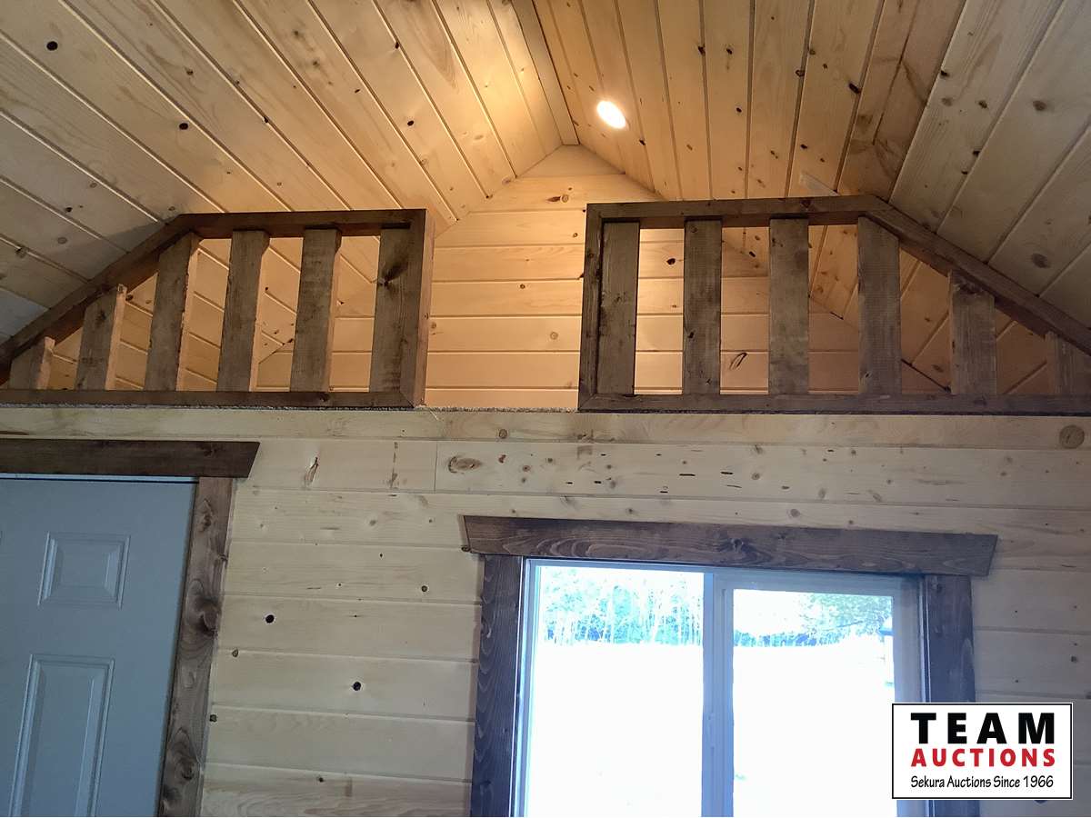 2 x 6 wall and ceiling, all fully insulated, wired with 100 amp service, ceiling pot lights, outside lights on veranda, (2) upstairs lofts with one removeable ladder, lofts are carpeted, metal roof, on skids with tow bar, sliding windows, coat hooks, insulated locking front door, laminate flooring, all stained with Australian timber oil