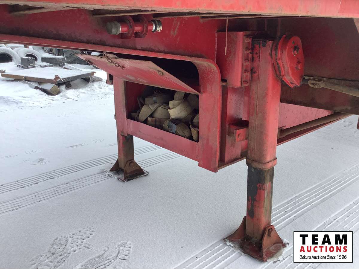 Stake and rub rails, sliding adjustable winch, air ride suspension, 2 pin position on 5th wheel, can be used on tandem and some TRI/A trucks, side mounts plug ins for wide load signs, tool box, air suspension dump valve, air load gauge, metal load bearing rear fenders, 235/70R22.5 tires