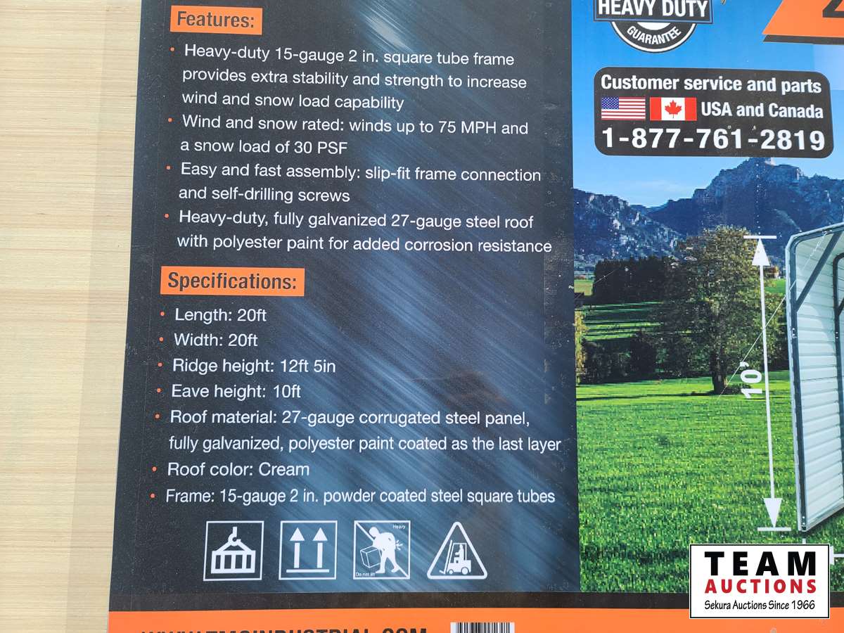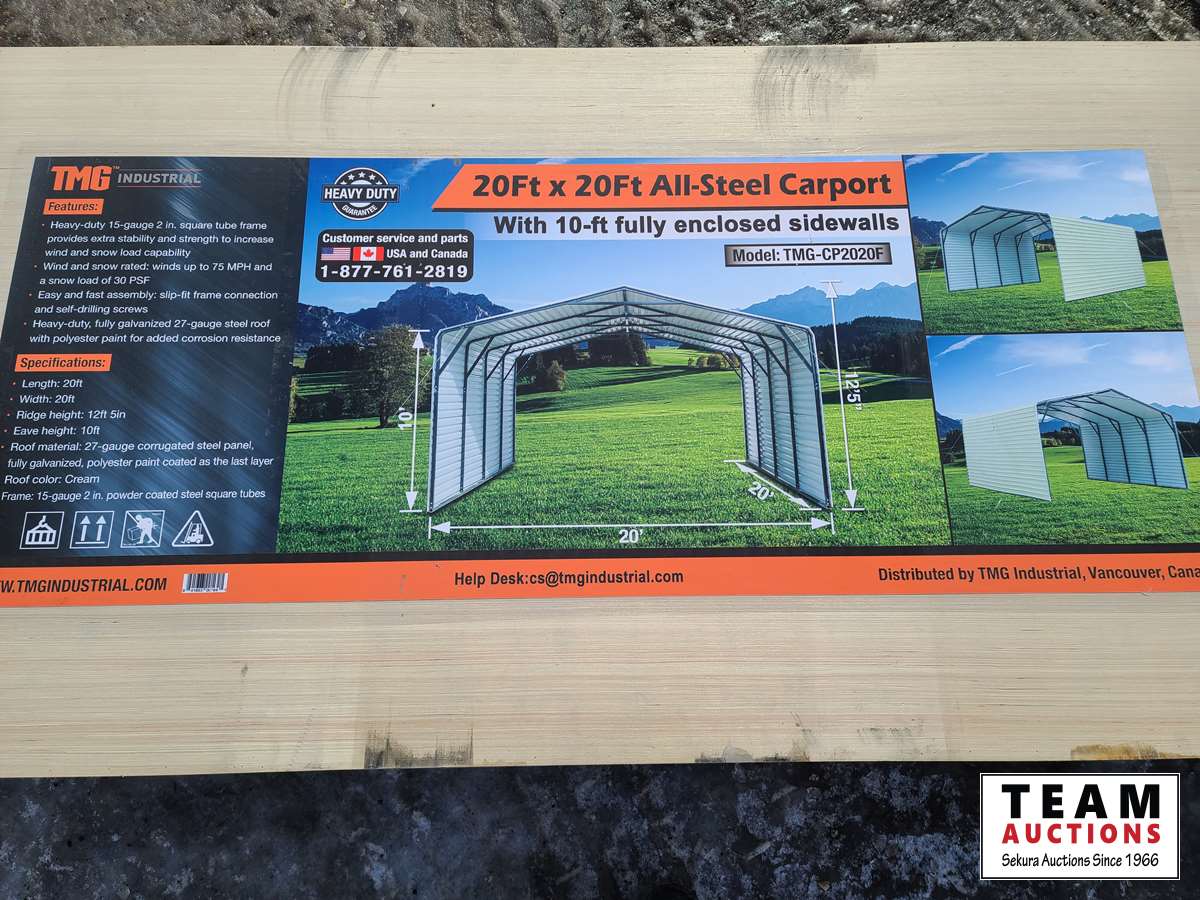 289 TMG Industrial 20 Ft X 20 Ft Enclosed Carport (Unused)