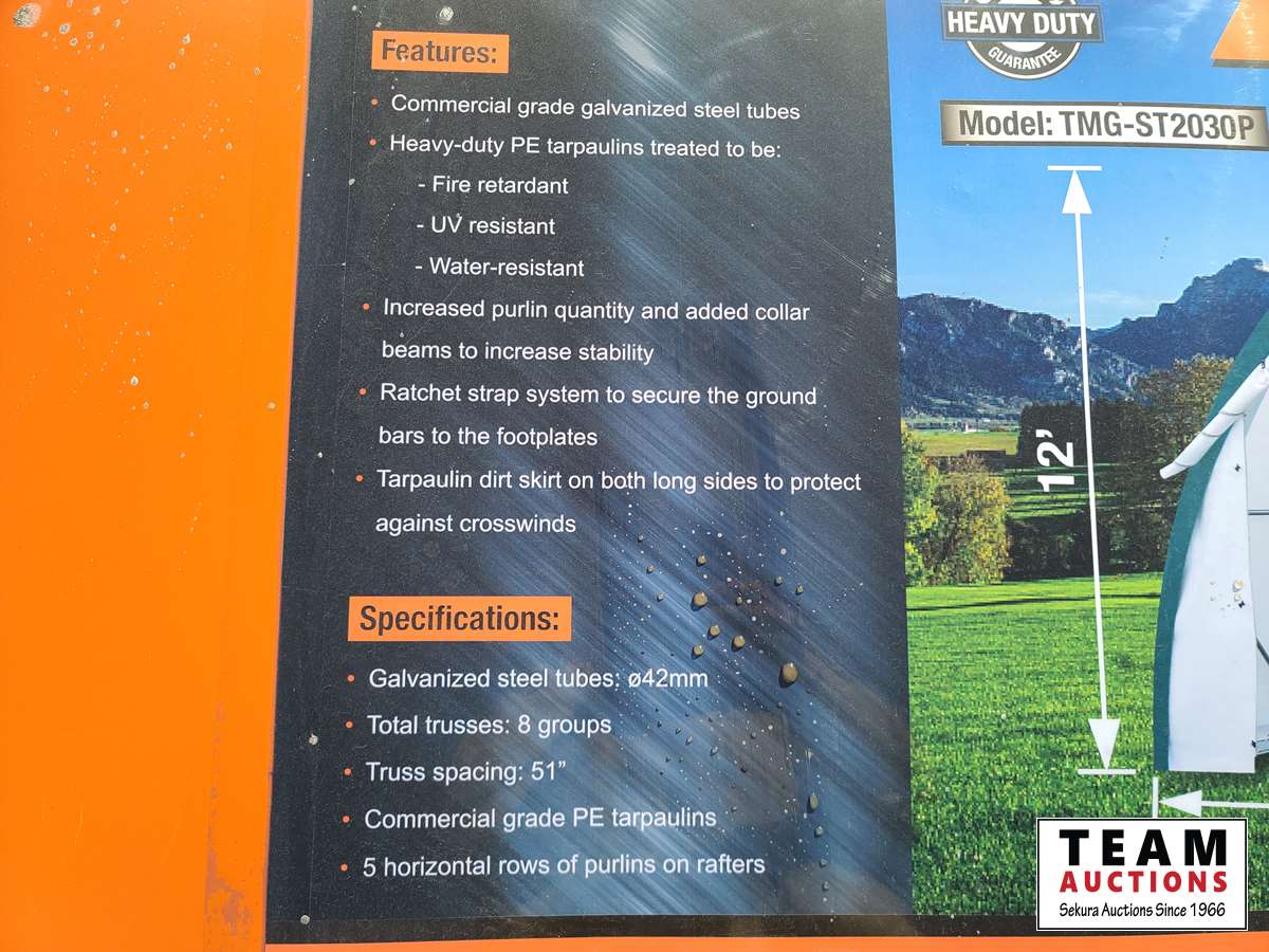 243 TMG Industrial 20 Ft X 30 Ft Peak Roof Shelter (Unused)