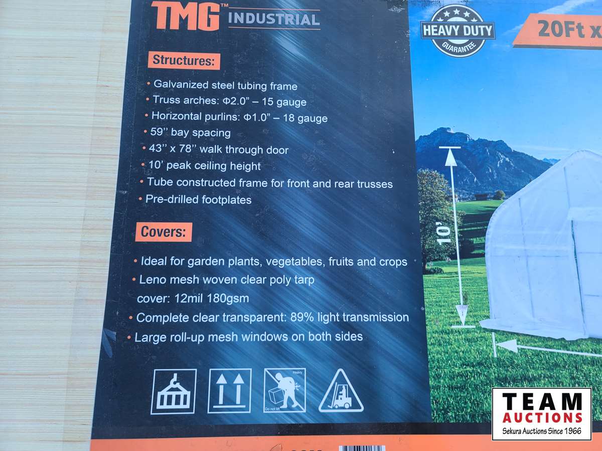 319 TMG Industrial 20 Ft X 30 Ft Walk-in Tunnel Greenhouse (Unused)